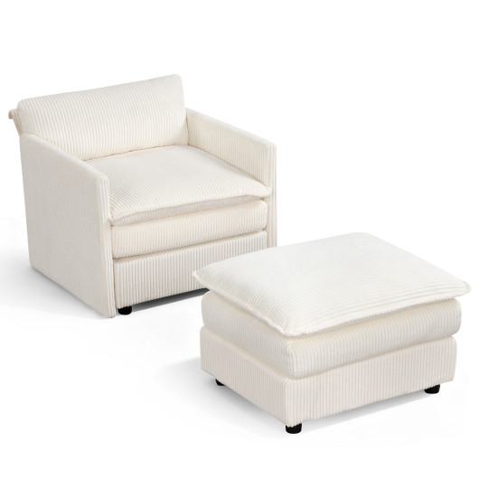 Costway Oversized Accent Chair with Ottoman with Soft Corduroy Cushions-Beige