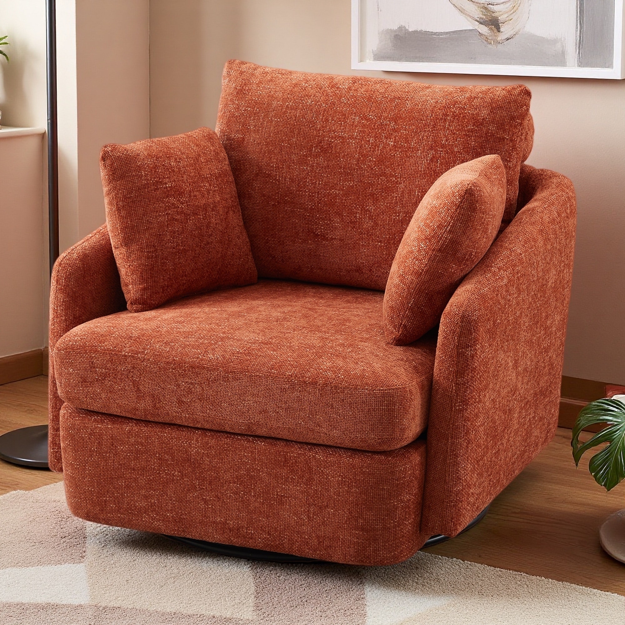 Chenille Fabric Swivel Accent Chair with 360掳 Rotation and 3 Removable Pillows