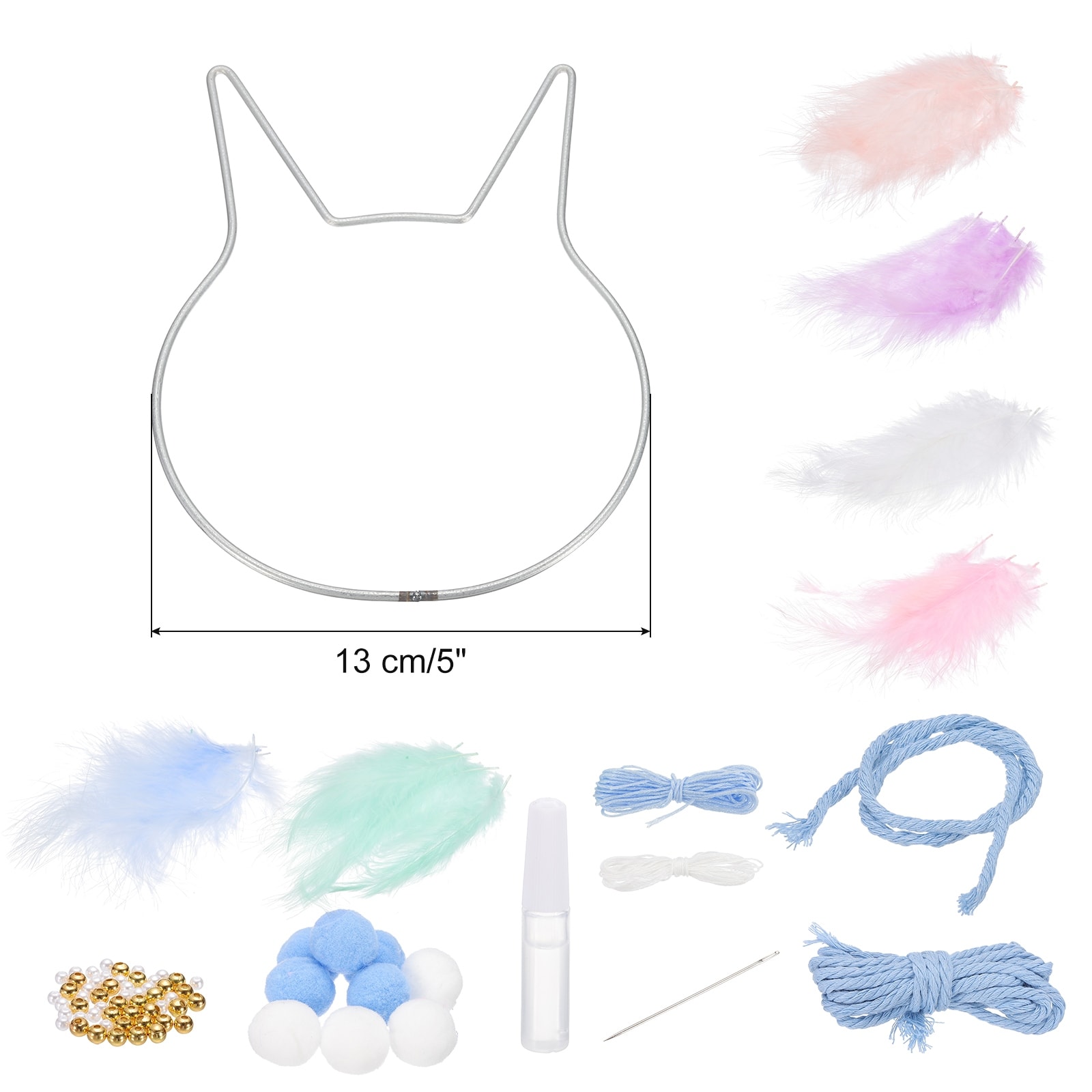 DIY Dream Catcher, Rabbit Making Dream Catcher Supply Feather Pompom Bead, Pink - D: 13cm