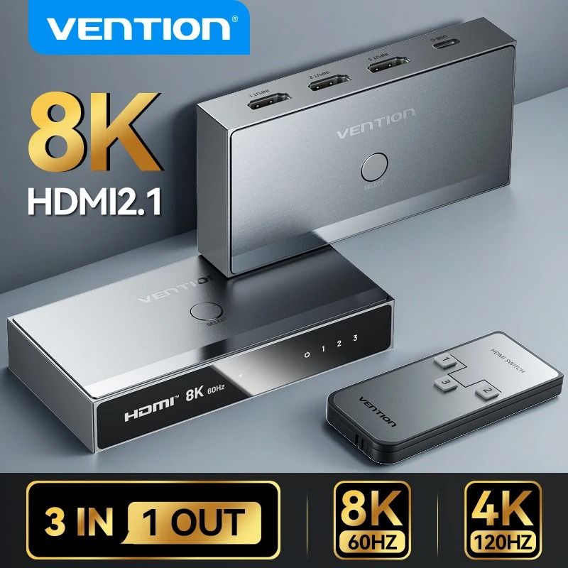 Vention HDMI 2.1 Splitter Switch 3 In 1 Out 8K 60Hz 4K 120Hz For TV Xbox PS5 And Monitor 4k Hdmi 2.0 5 In 1 Out