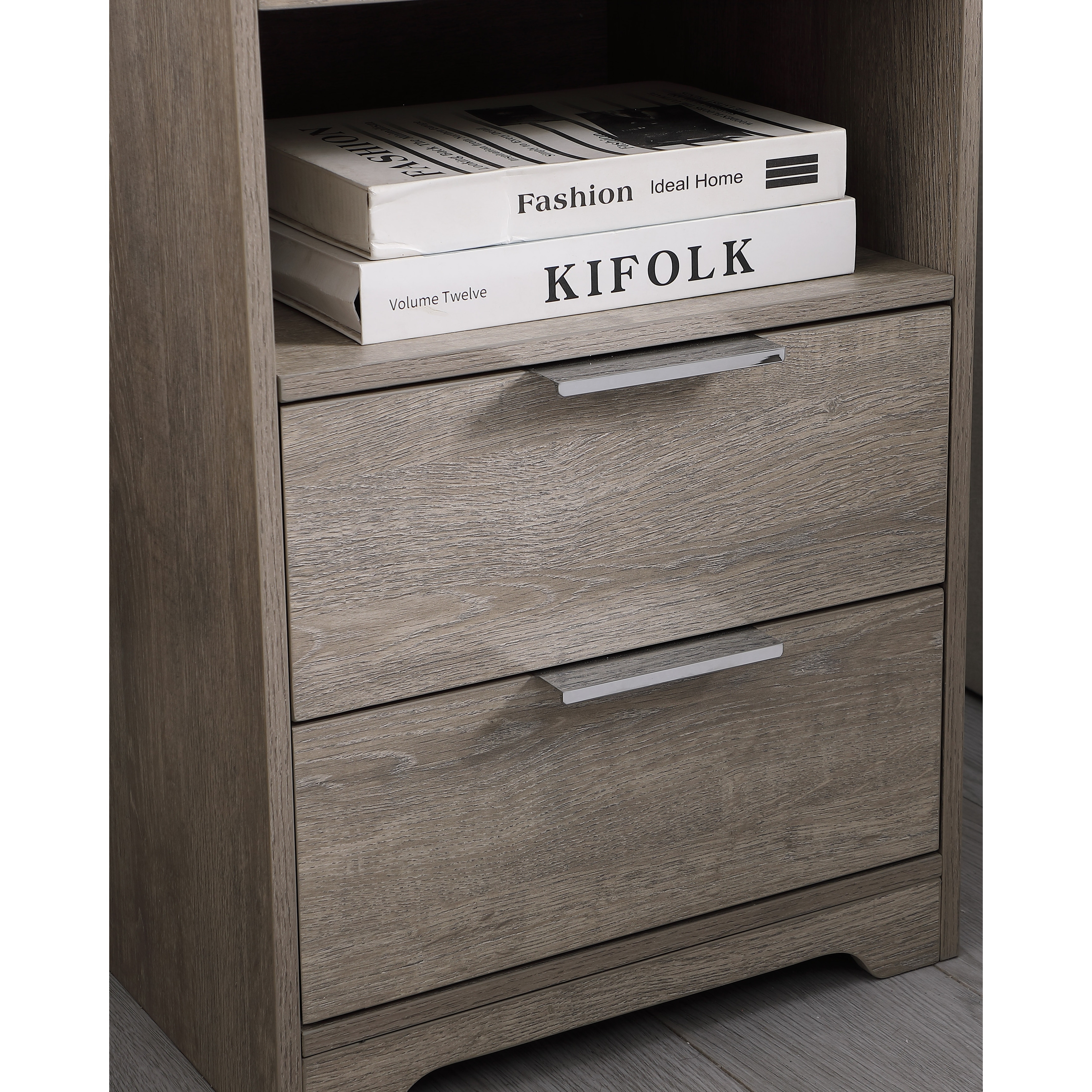 Space-Saving Wooden 2 Drawer Nightstand with Open Cubby Storage Shelf for Bedroom Organizer
