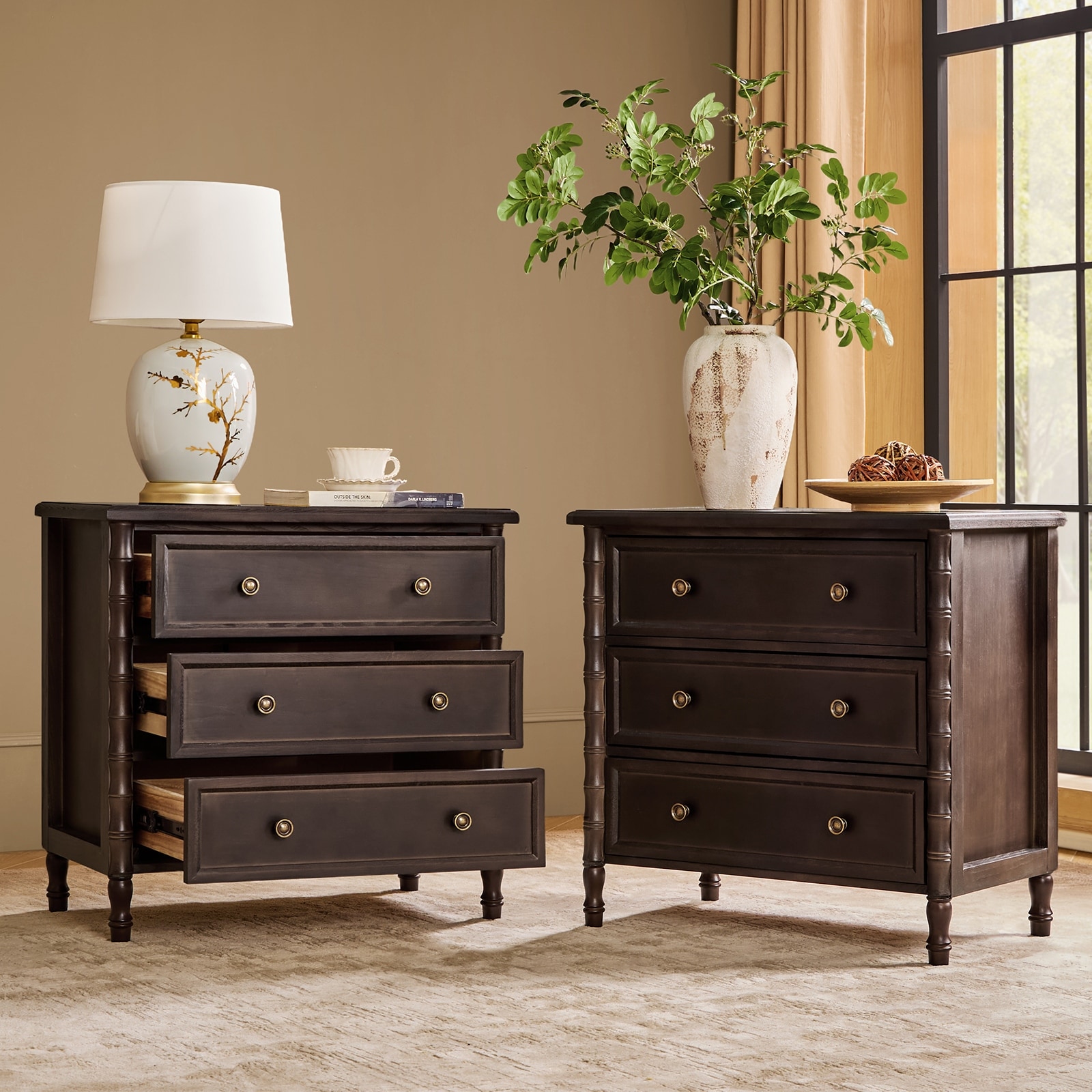 Carol Transitional 28"Tall 3-Solid Wood-Drawer Nightstand with Charging Station and USB ports Set of 2 By HULALA HOME