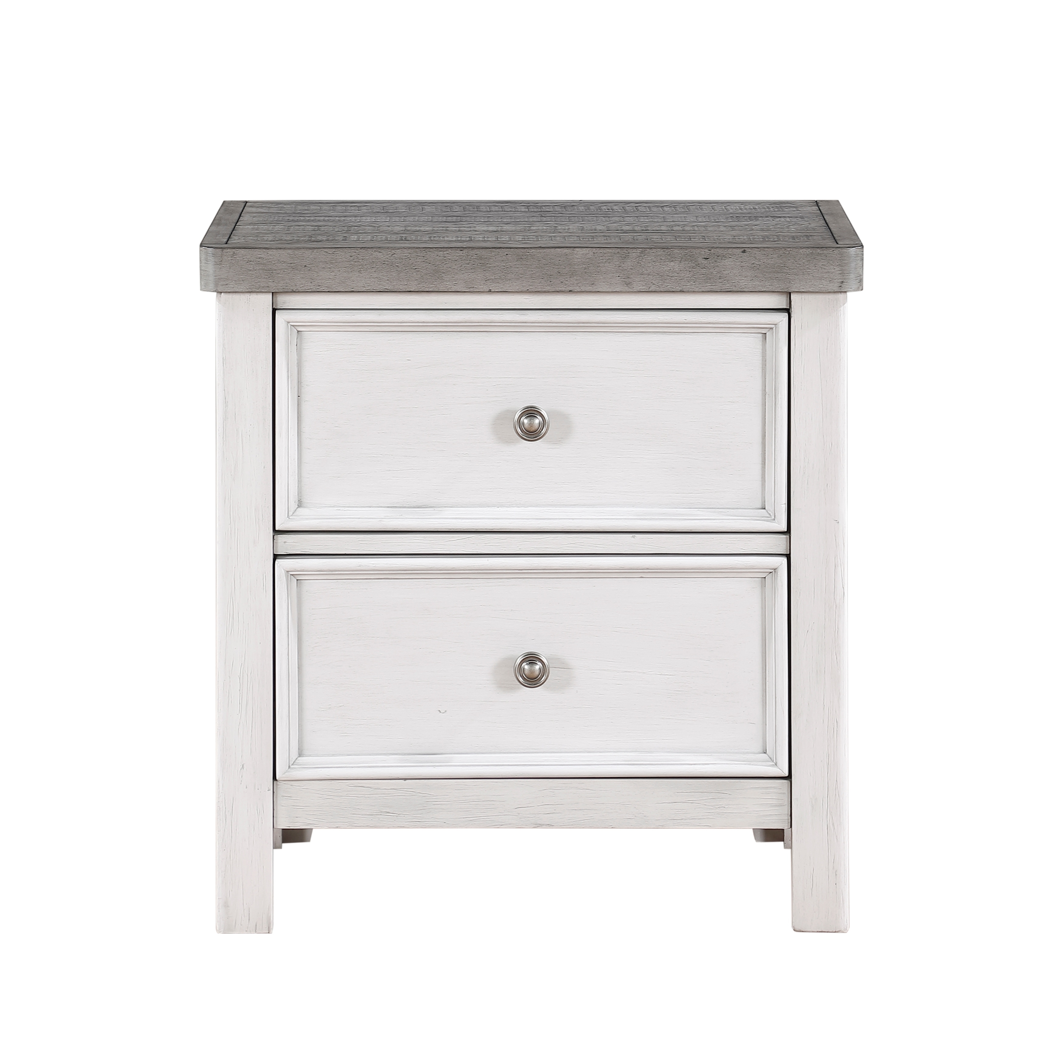 white and gray finish 1pc bedroom nightstand of 2 drawers classic design wooden furniture