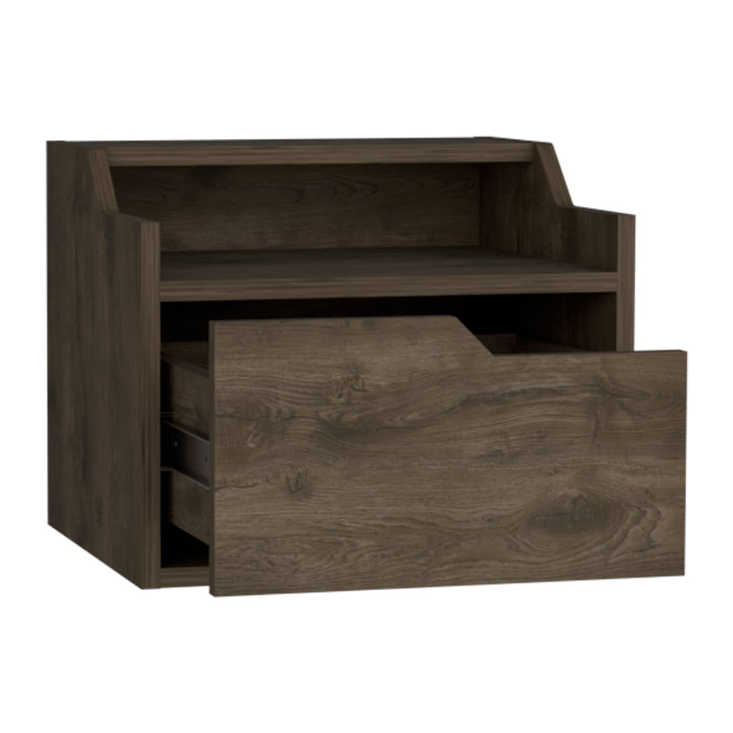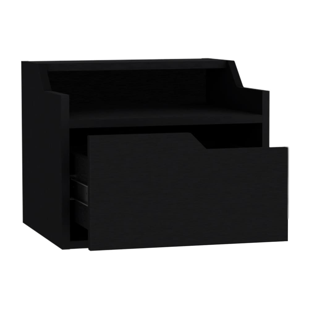 wood mini oak-ish floating open bedside, 1-drawer