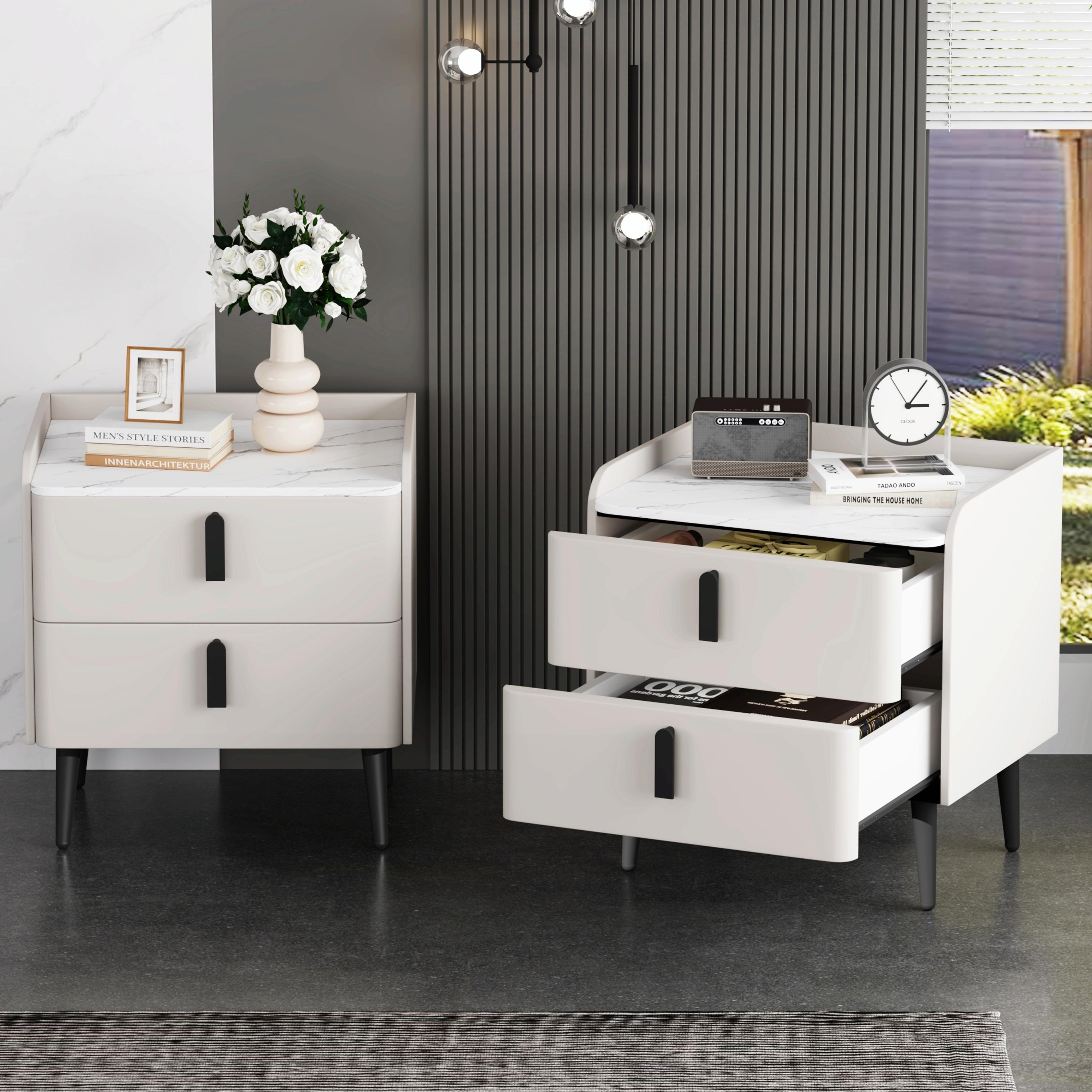 Nightstands Set of 2 - Night Stand with 2 Drawers and Marble-Pattern Tabletop