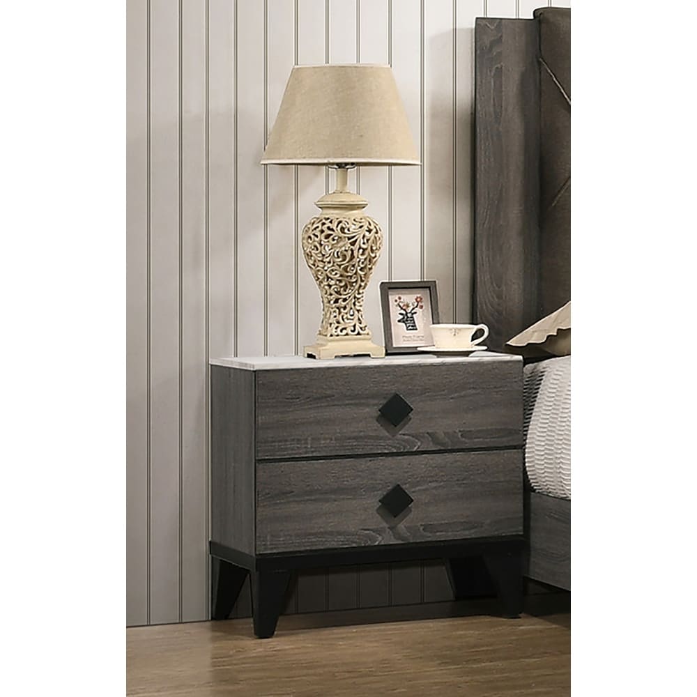 two-tone finish wooden nightstand with 2 drawers, foil grey