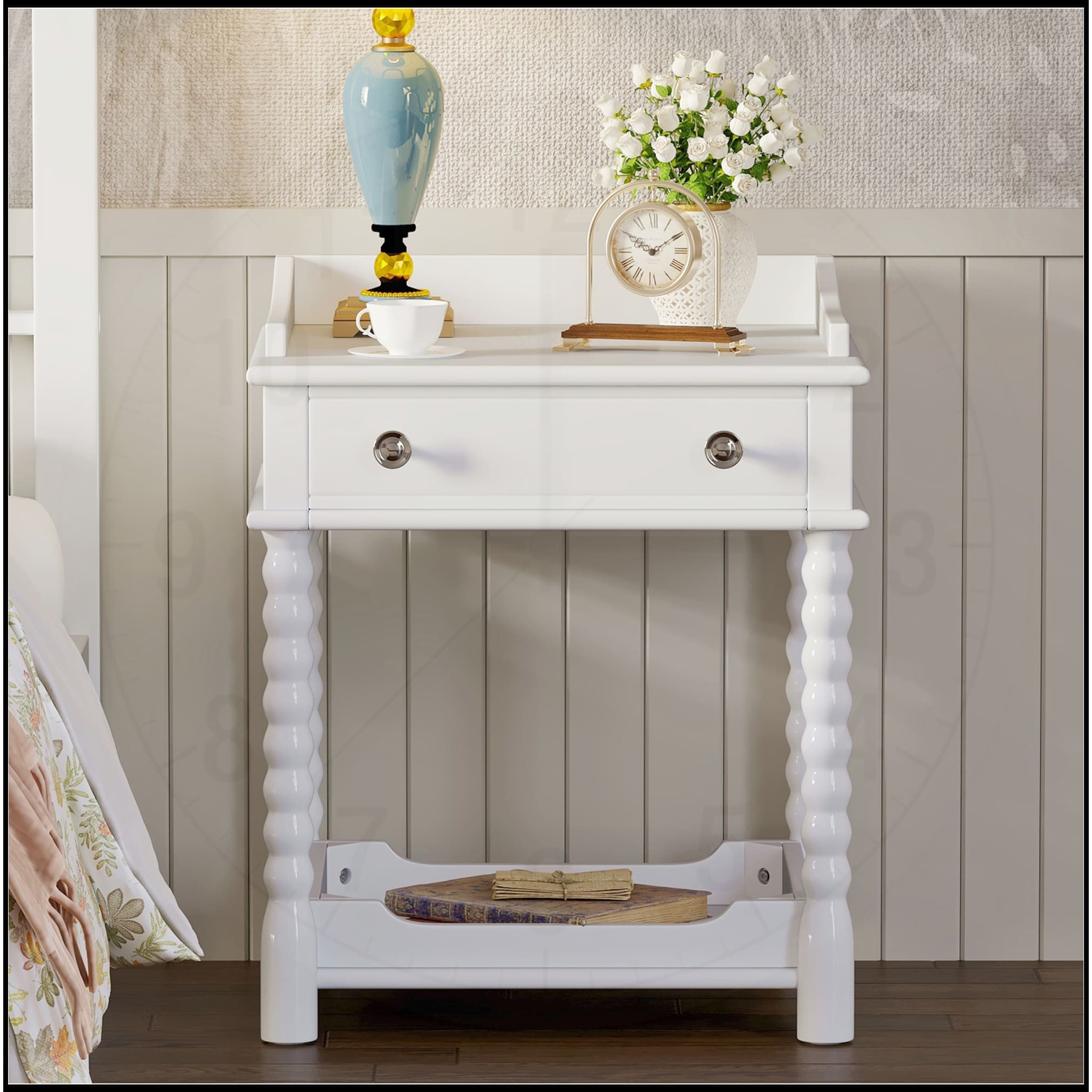 Leon Traditional 28"W 1-Drawer Curved Front Solid End Table with Pull-out Trayand Built-In Power By HULALA HOME