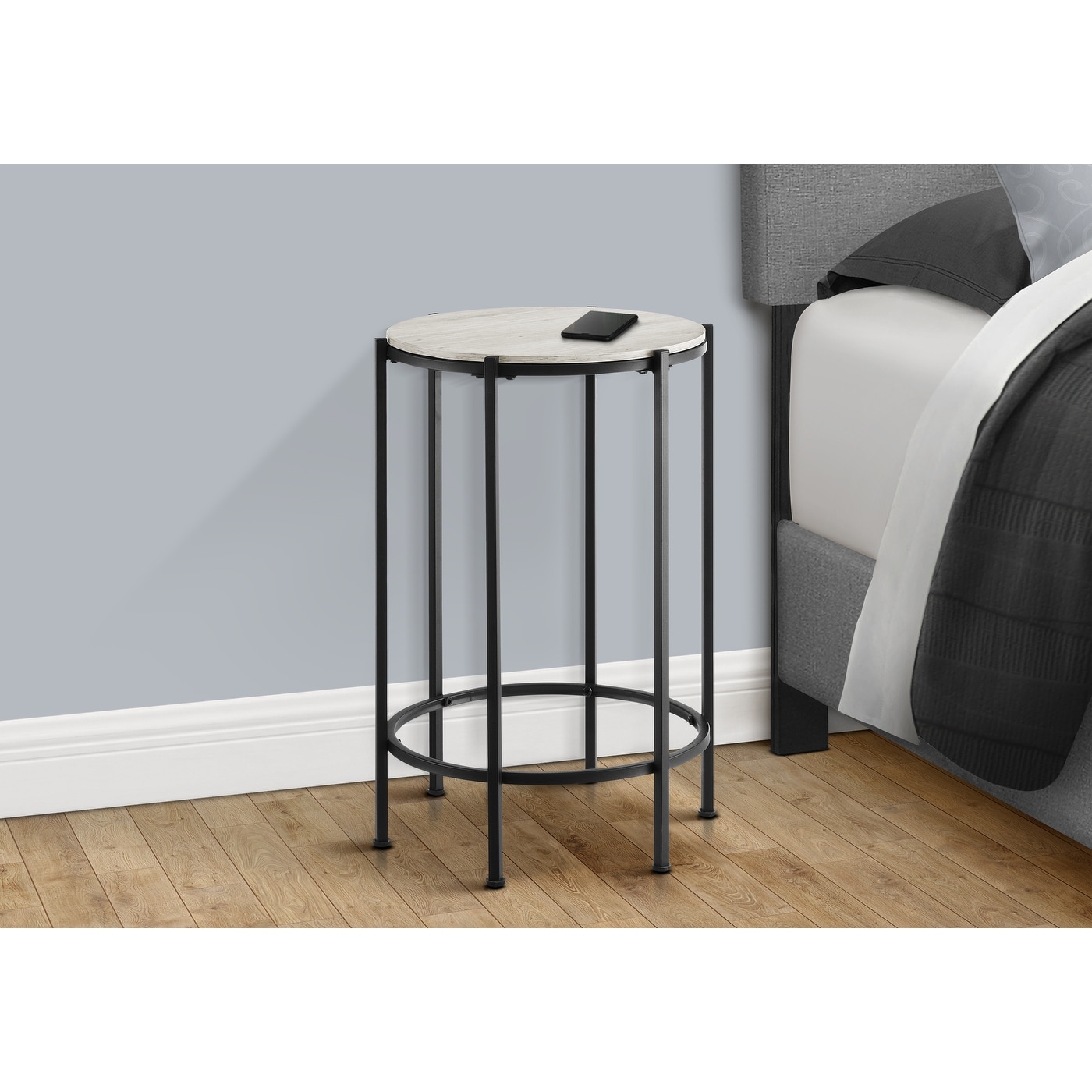 accent table, end, round, side table, small, lamp, living room, bedroom, nightstand, washed oak laminate, black metal, contempor