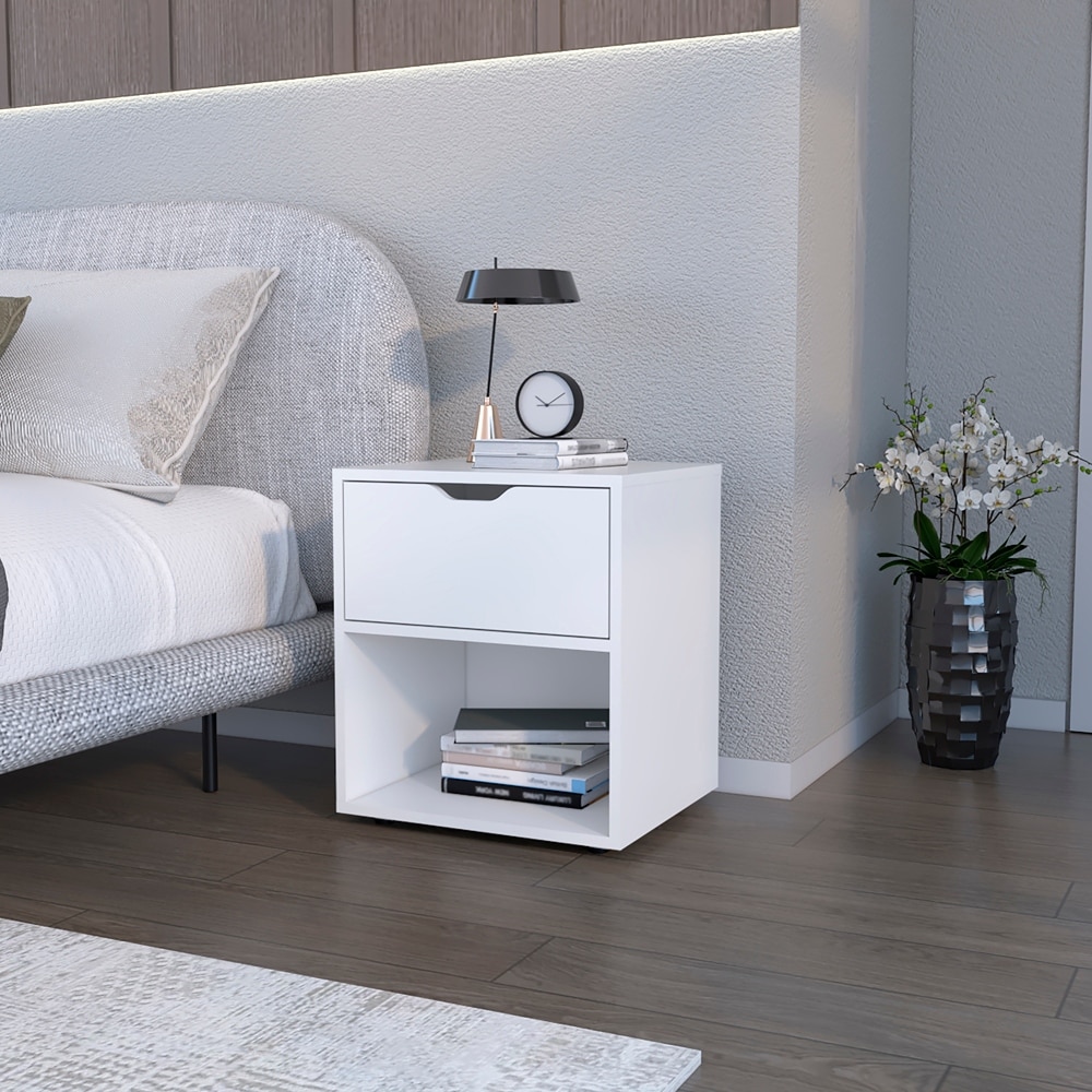 kaia z nightstand , end table, side table one drawer, one cabinet, four legs, superior top -pine / white