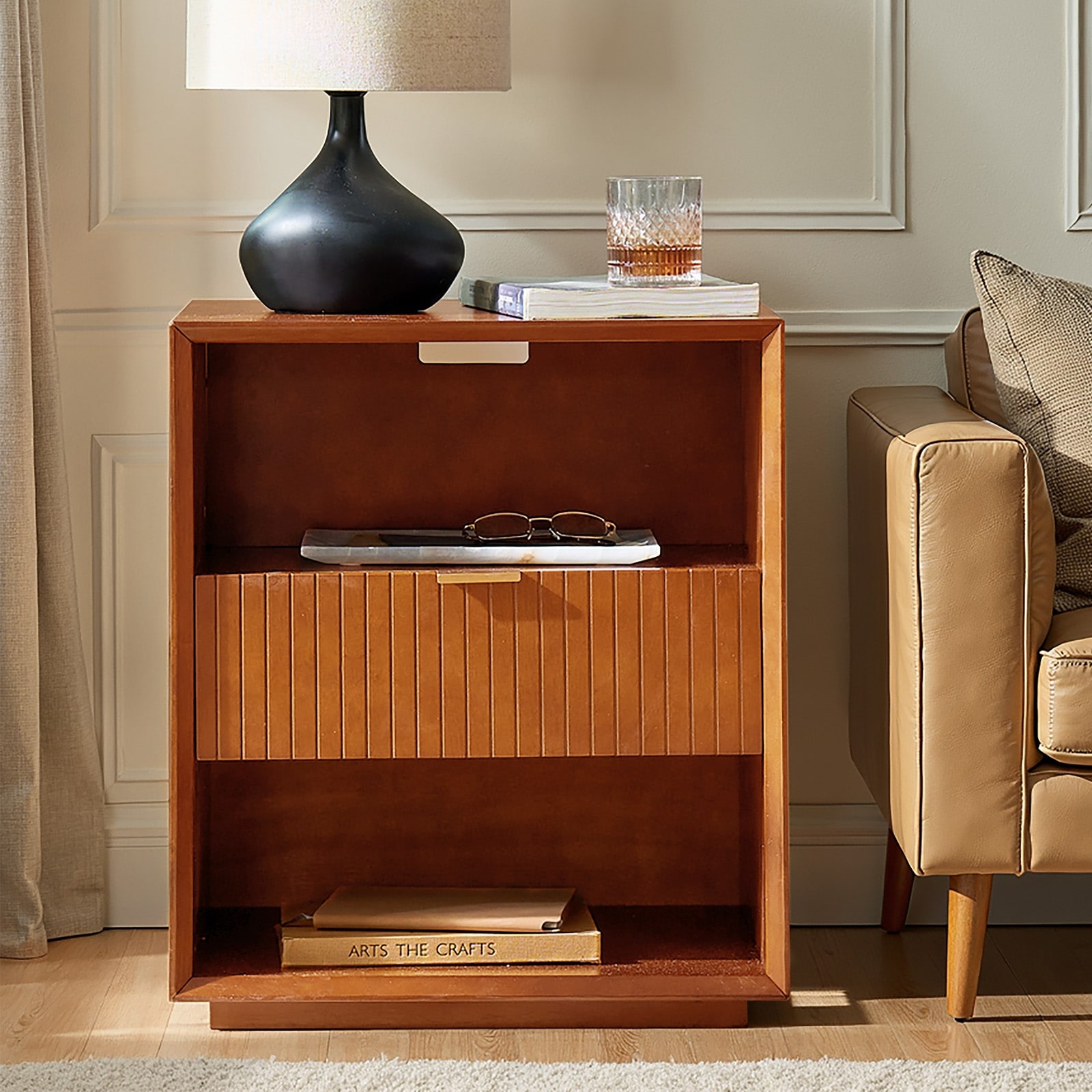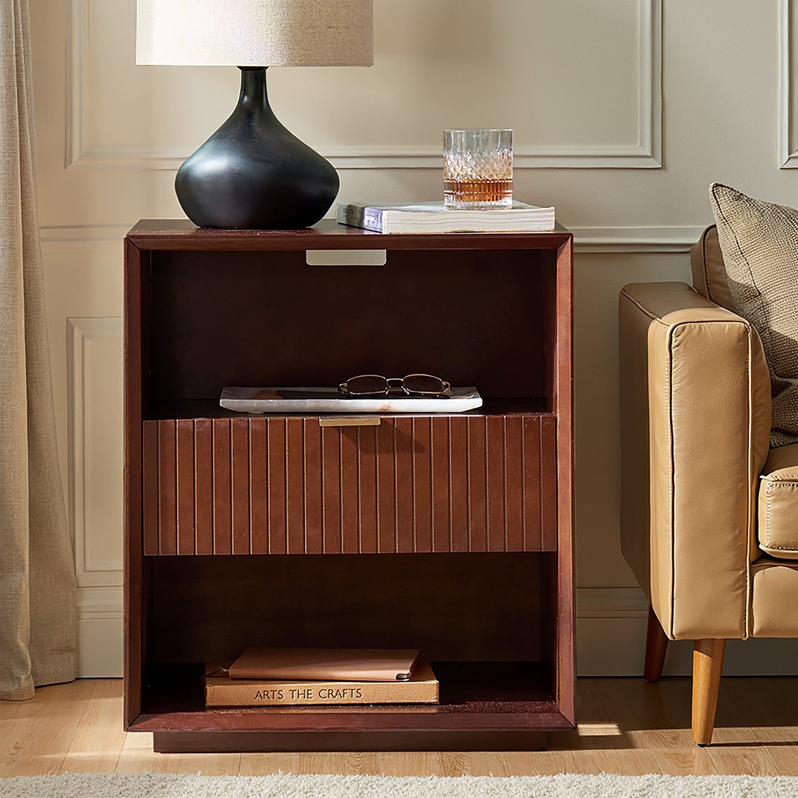 Guille Mid-century Modern 1-Drawer Fluted Nightstand with Built-in Power Outlet & USB Ports by HULALA HOME