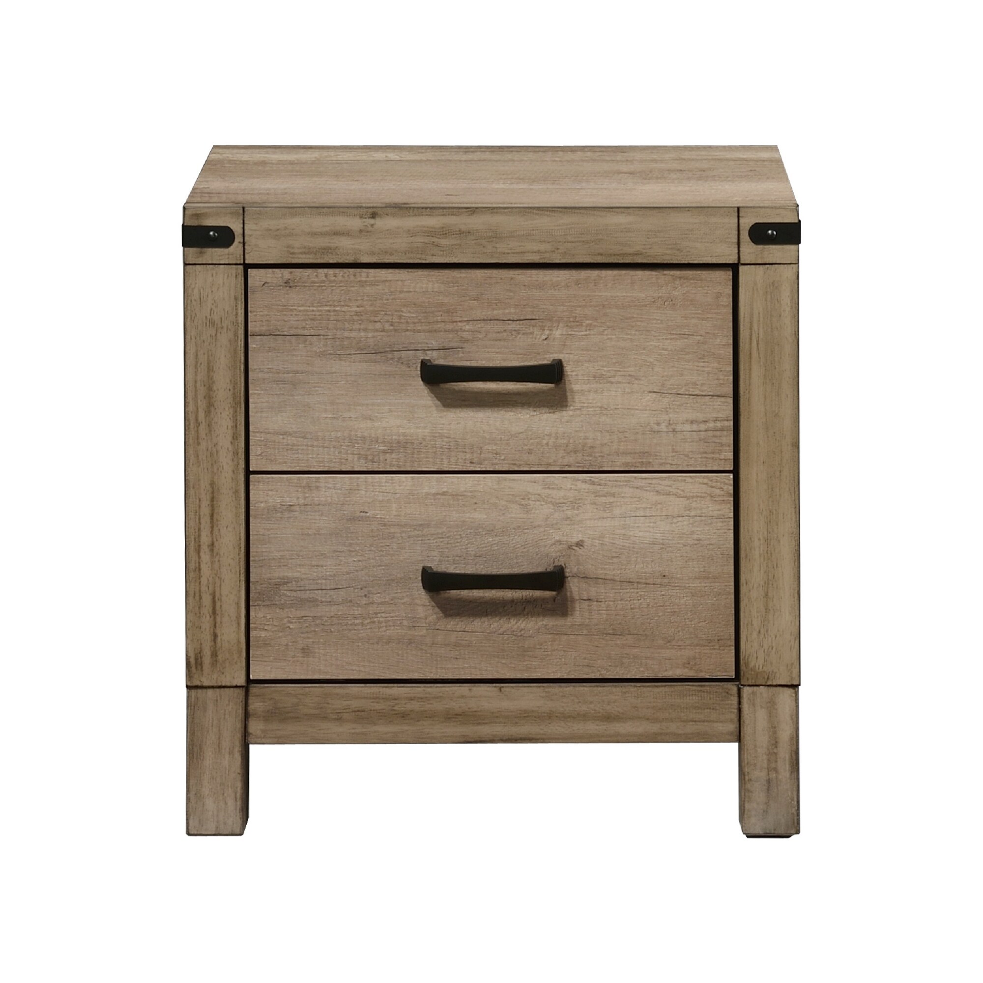 2 Drawers Wood Nightstand with Metal Handle in Dark Gray