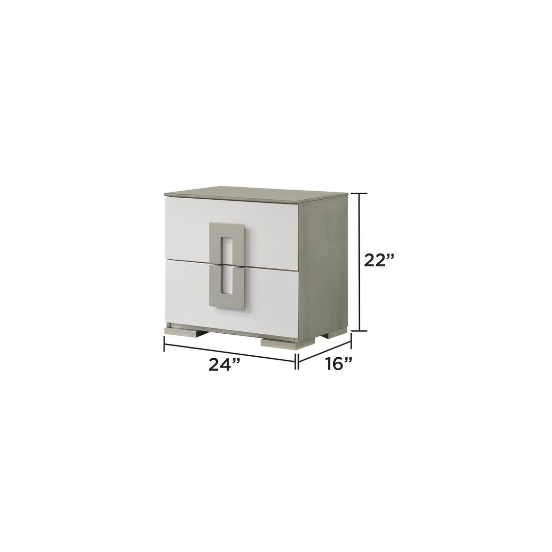 crystal modern style 2-drawer nightstand made with wood finished in white