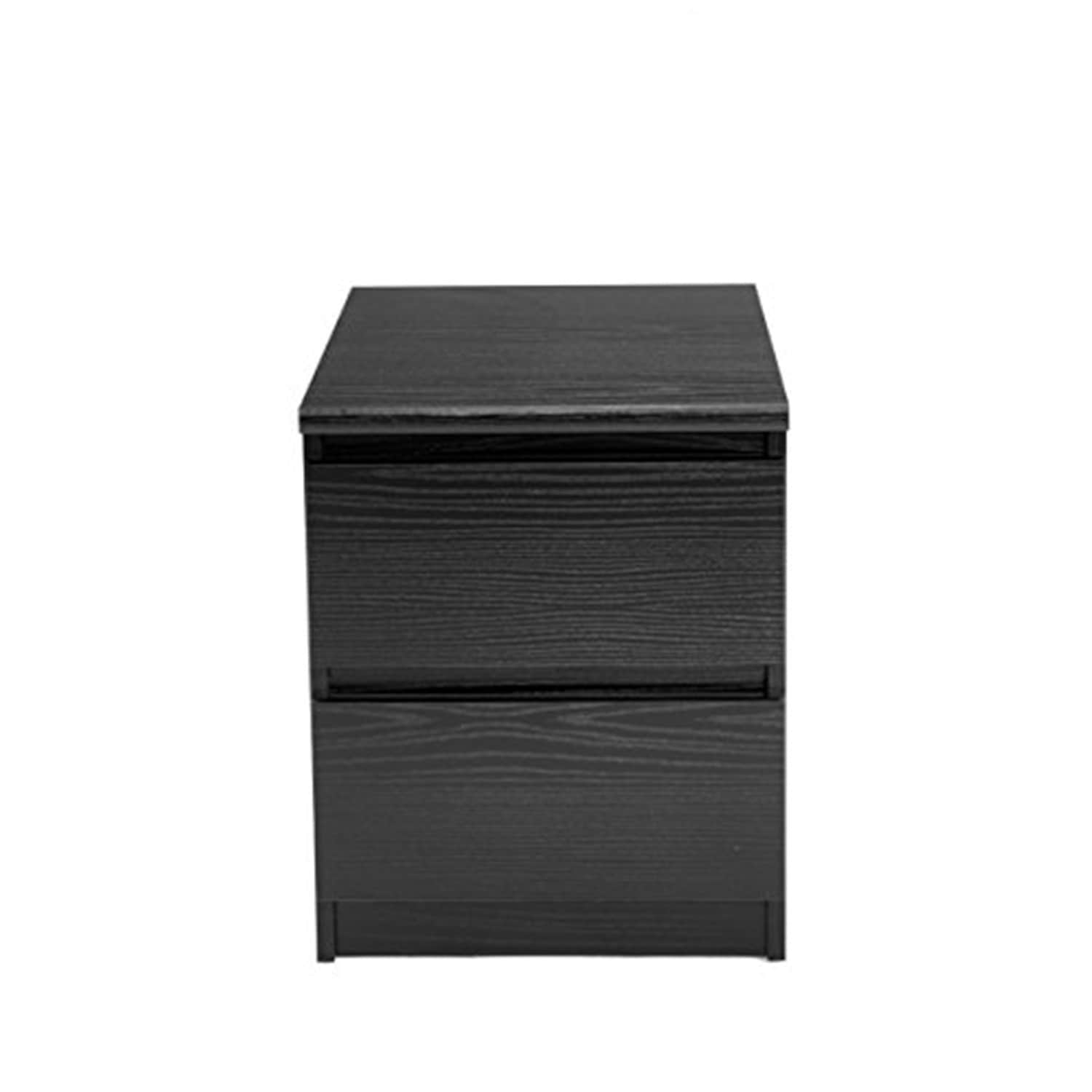 Nightstand with 2 Drawers - Modern Bedroom Side Table, Black Wood Grain Finish, Scratch Water Resistant