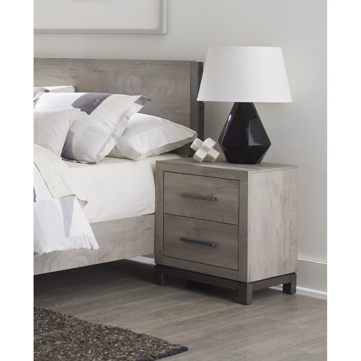 1pc contemporary 2-drawer nightstand with chrome accents gray rustic finish bedroom wooden furniture