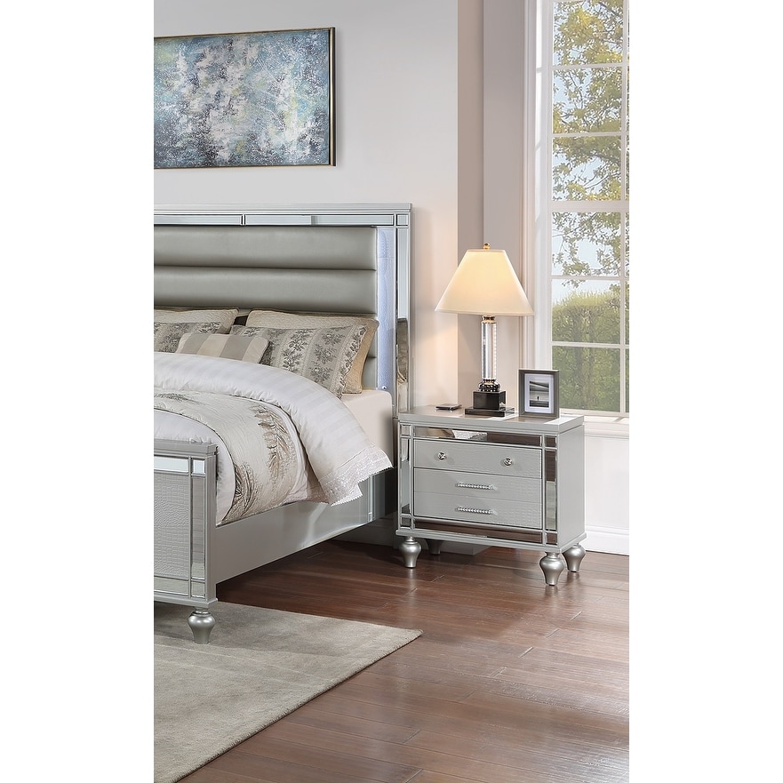 classic luxury look silver 1pc nightstand wooden bedside table drawers w mirror glass panel bedroom furniture
