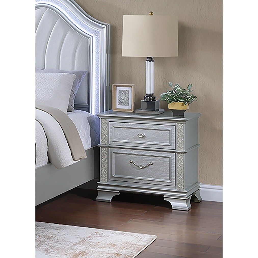 elegance gray finish 2-drawers nightstand decorative glitter front 1pc bedside table bedroom