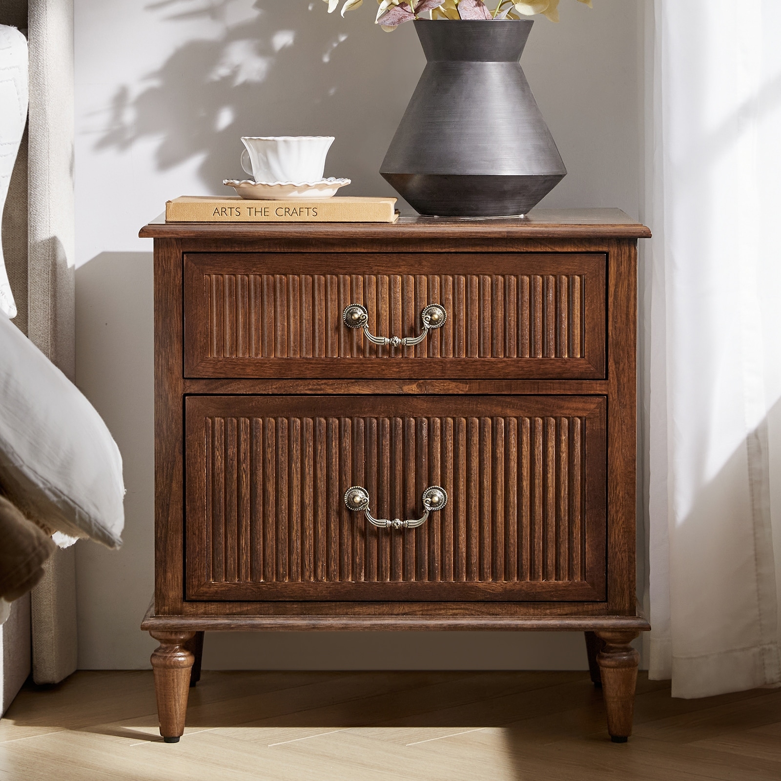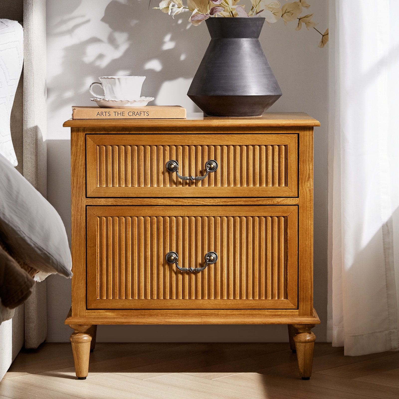 2 Drawers Nightstand with Ring Pulls