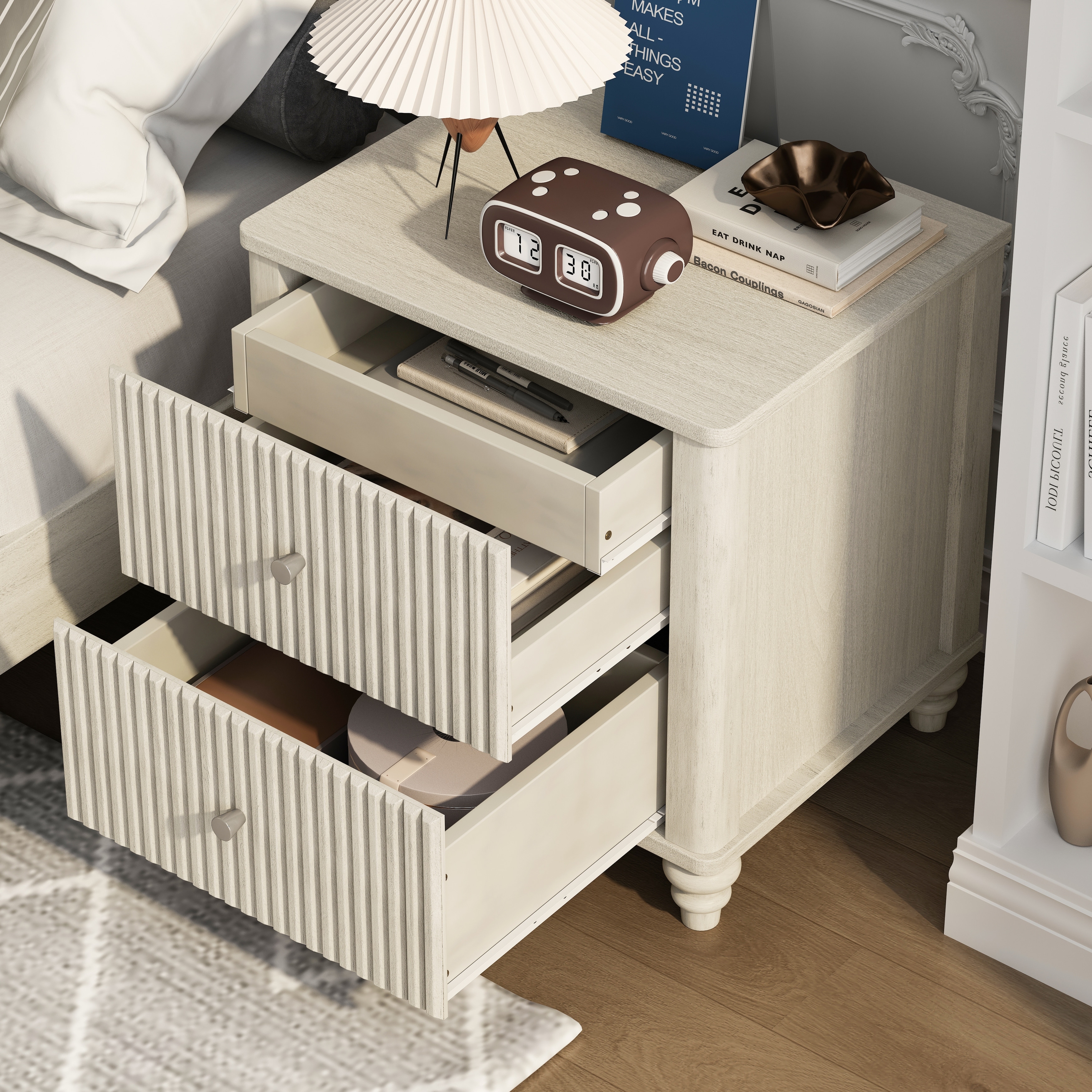 3-Drawer Nightstand Storage Wood Cabinet
