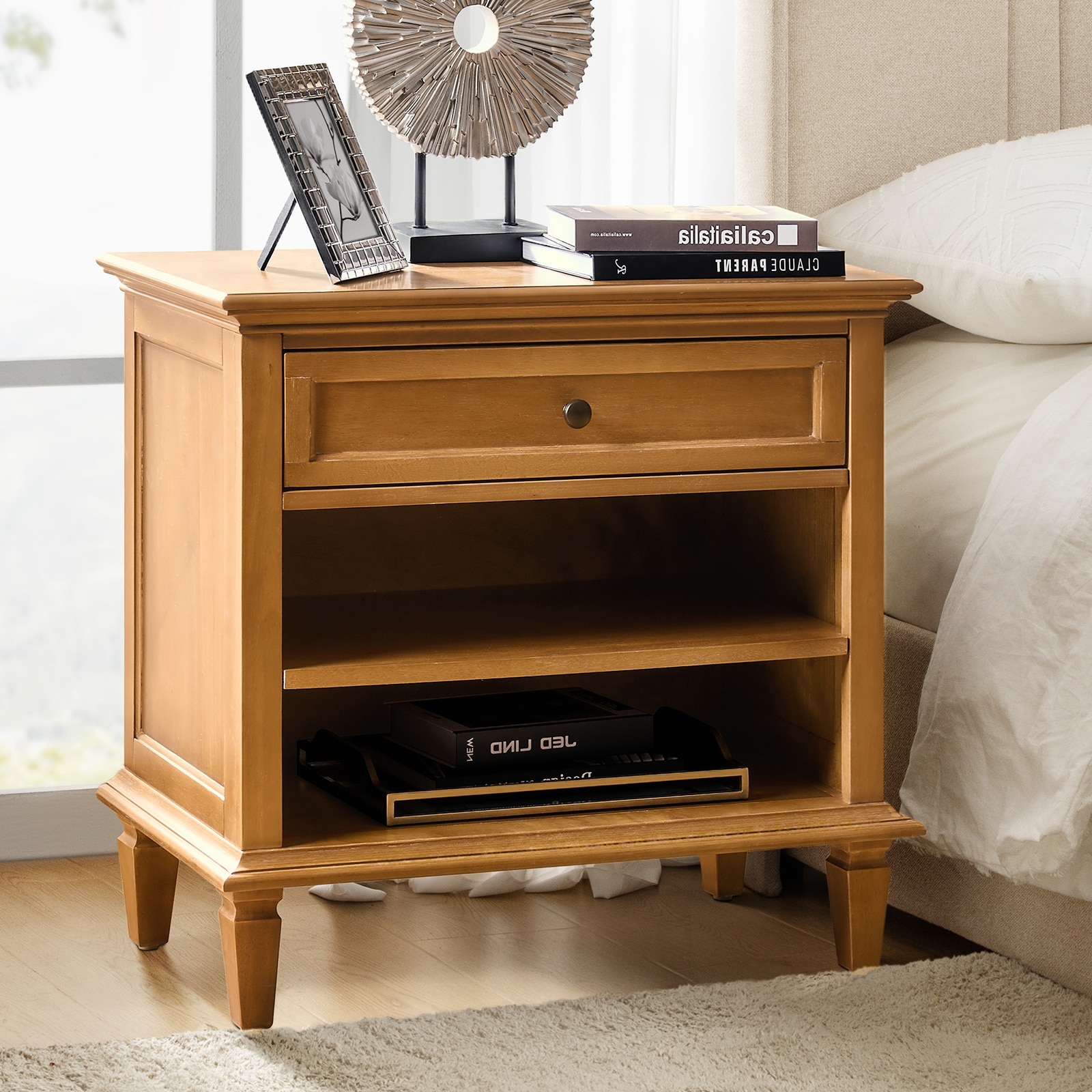 Traditional Nightstand of 3 Drawers Oak 1pc Bedside Table Wooden Formal Bedroom Furniture Decorative Drawer Pulls