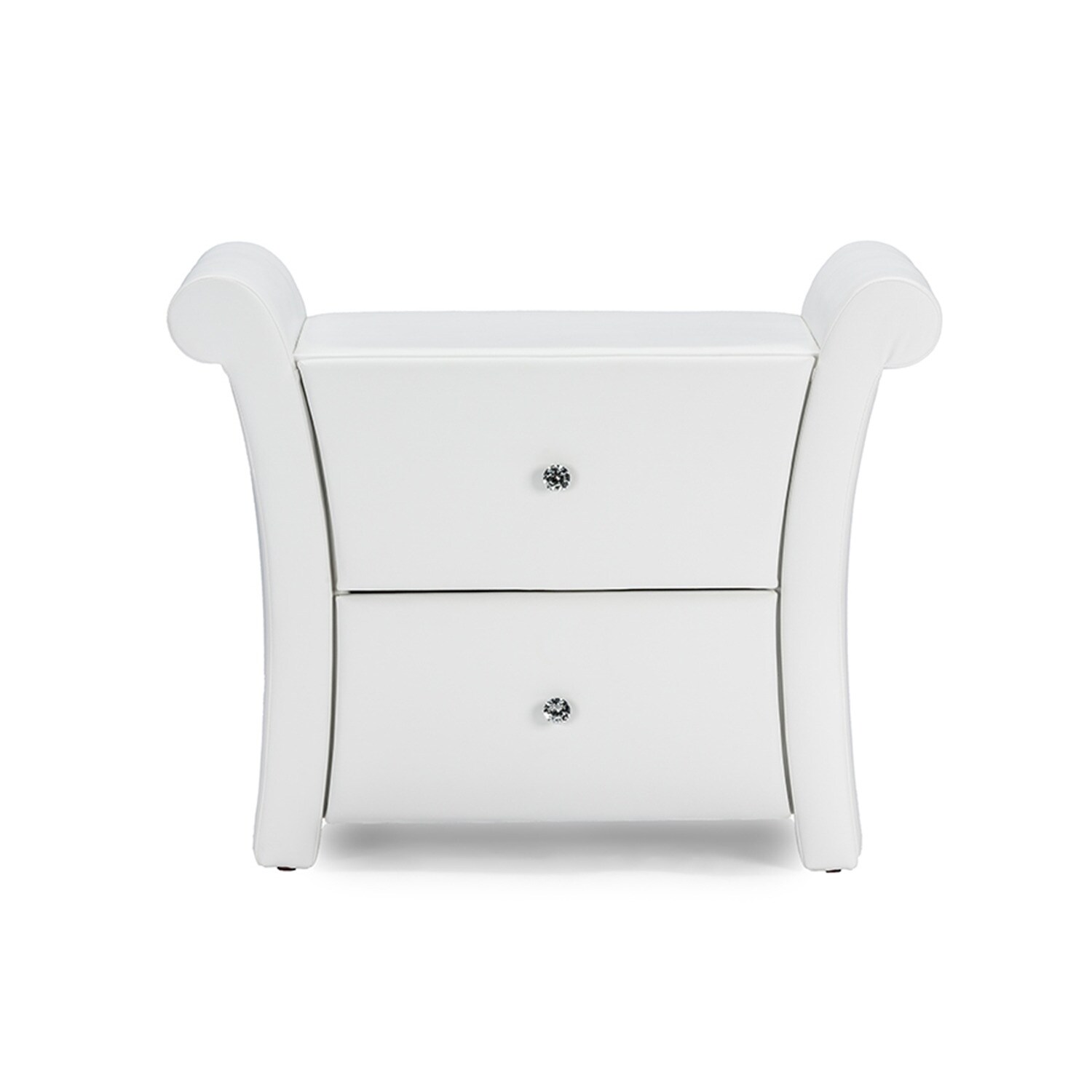 Nightstand with Storage Drawers, Bedside Table with Crystal Knobs, Large Nightstand, White Finish