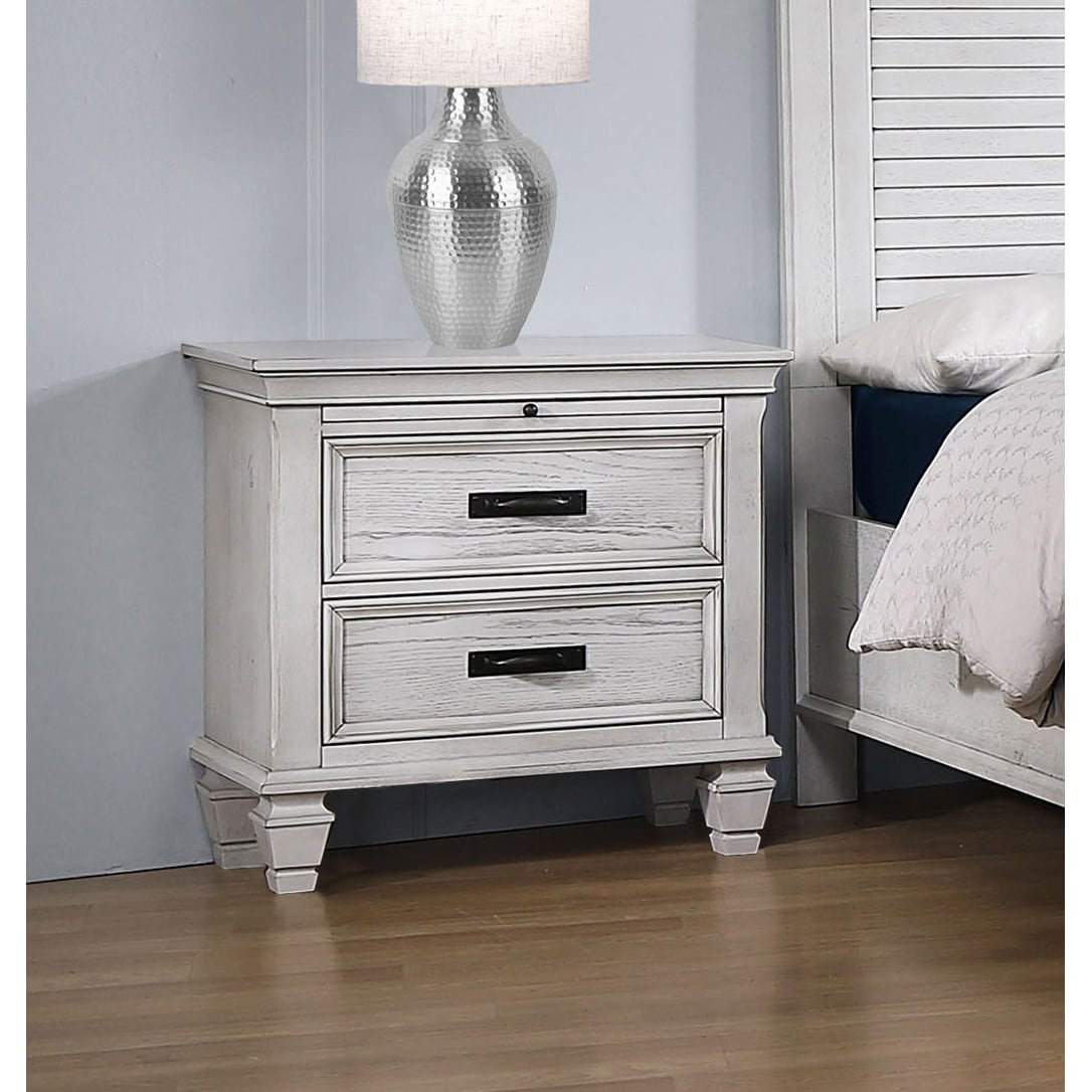mdf nightstand with 2 drawers in distressed white finish