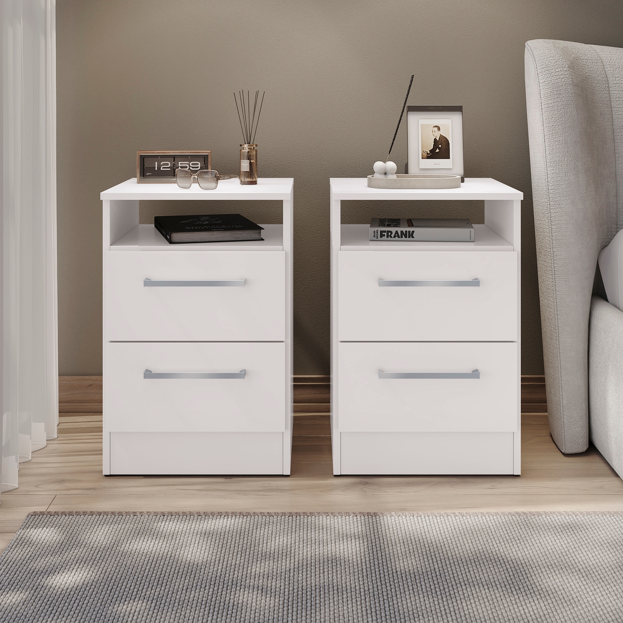 Kappesberg Miami Set of 2 Modern Nightstands with Drawers and Open Shelf – 23.7" H