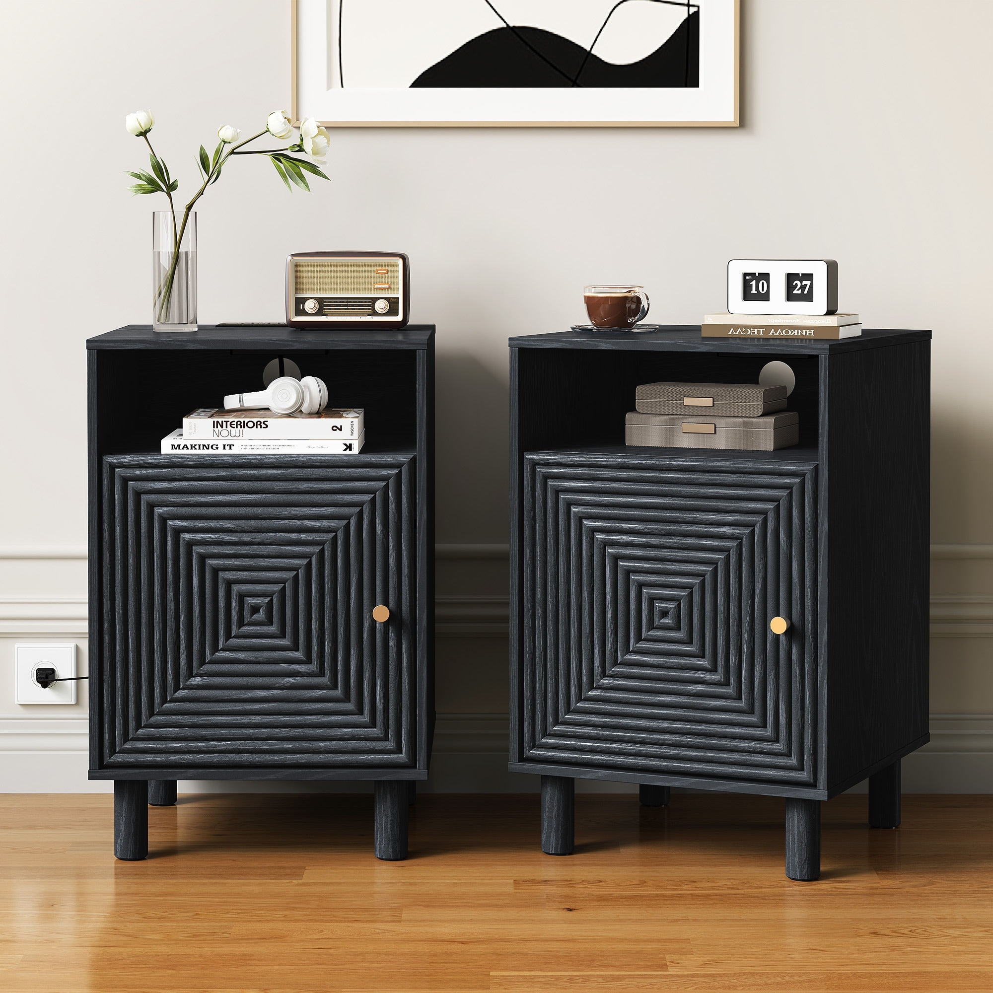 Nightstand Set of 2 with Charging Station and Solid Wood Legs
