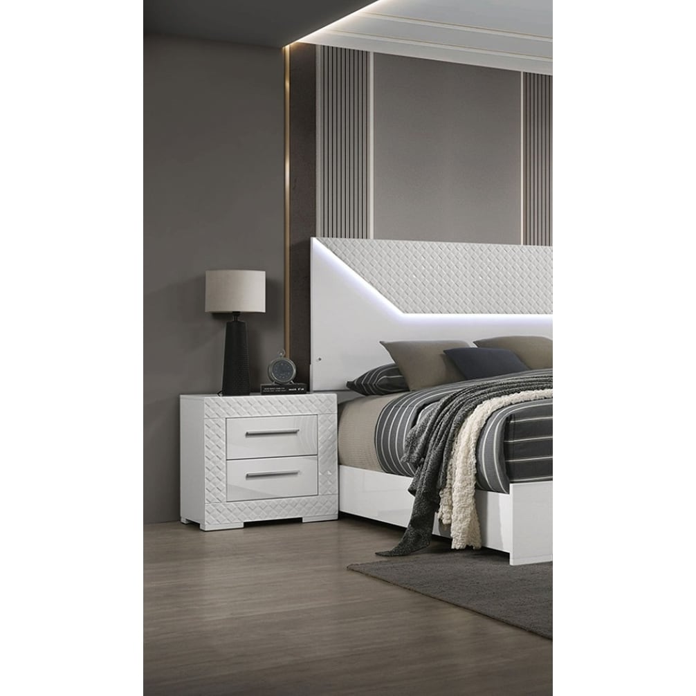 1pc contemporary bold geometric accents pristine high-gloss white finish two drawers nightstand wooden