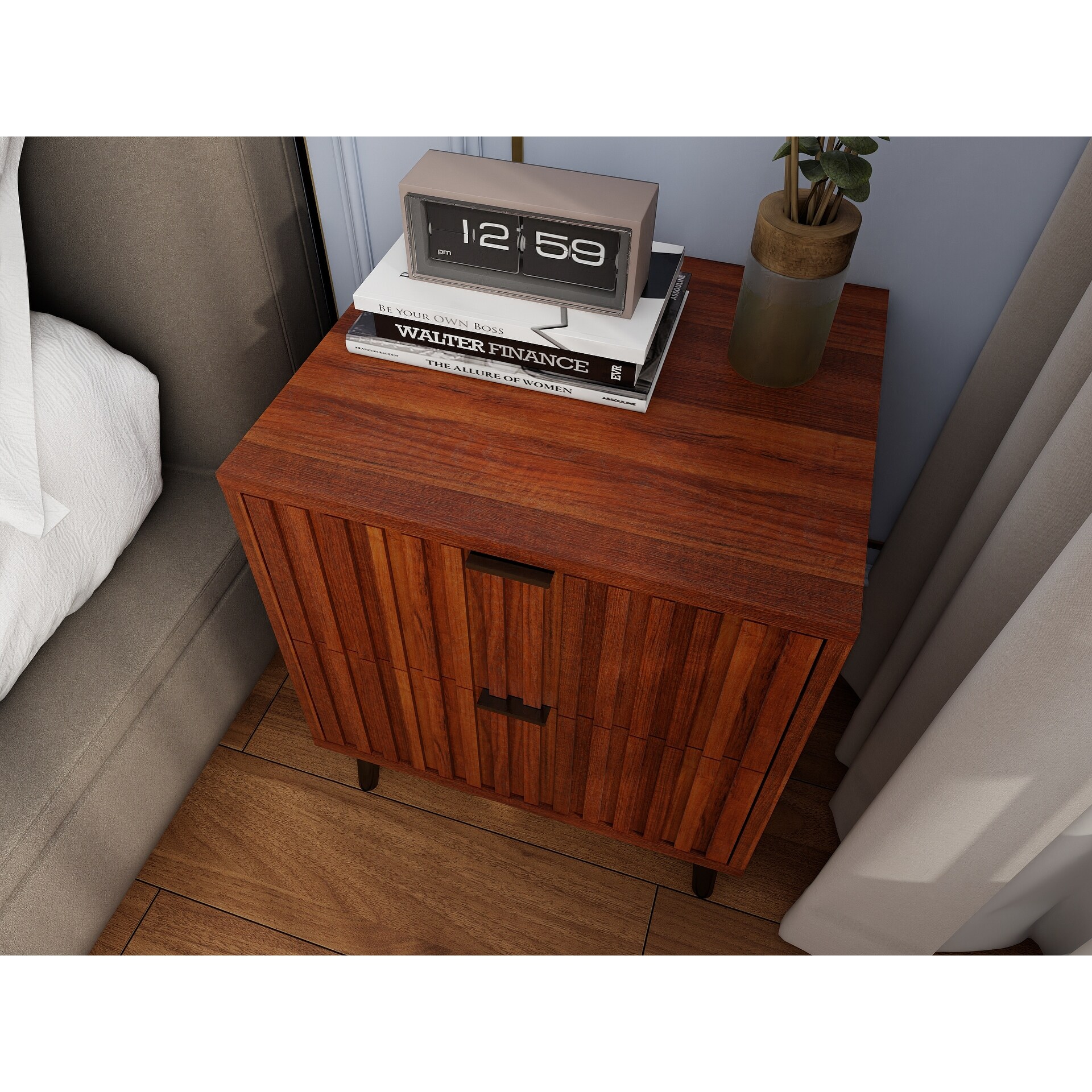 2 Drawers Wooden Nightstand with Wide Legs in Warm Brown