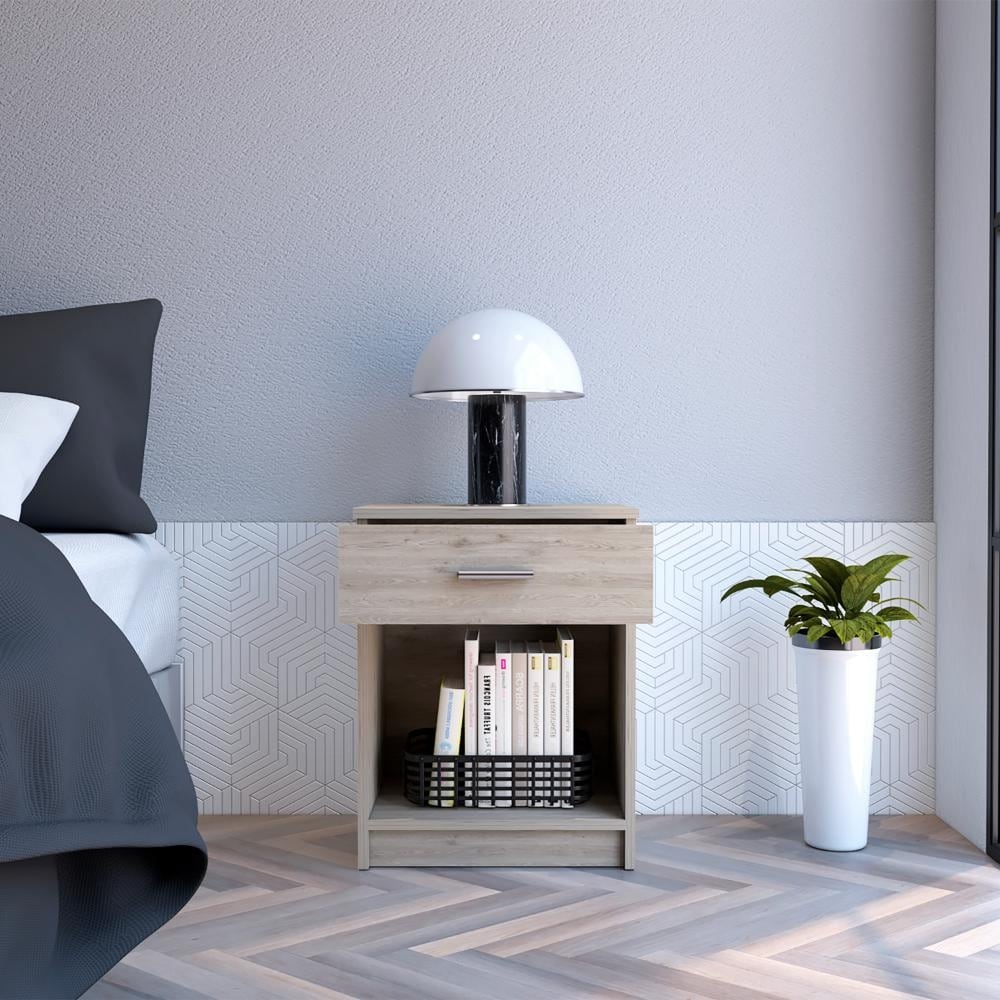 tall nightstand 29"h, with one drawer and functional storage, white / macadamia