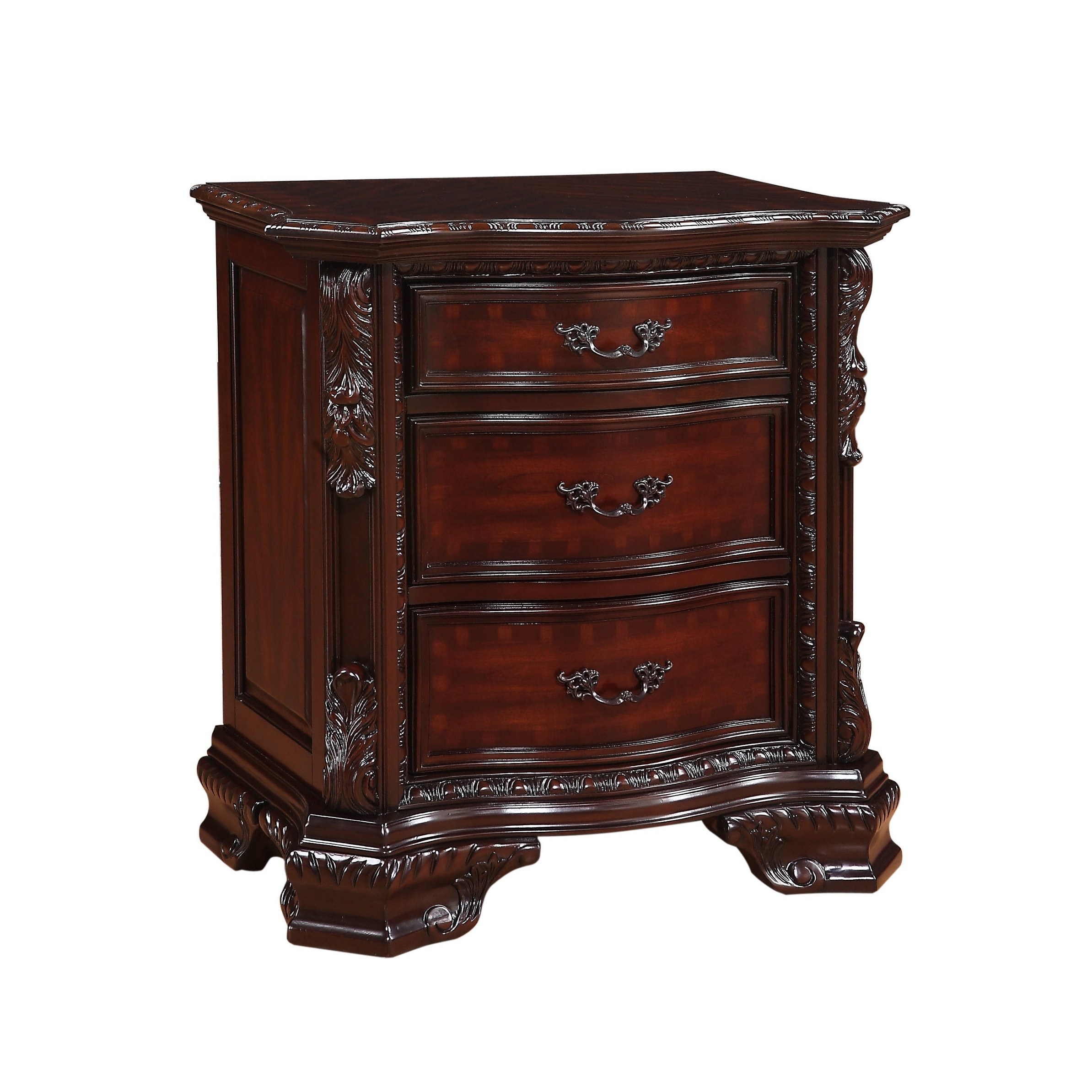 1pc traditional nightstand end table with three storage drawers brown cherry decorative drawer pulls solid wood bedroom furnitur