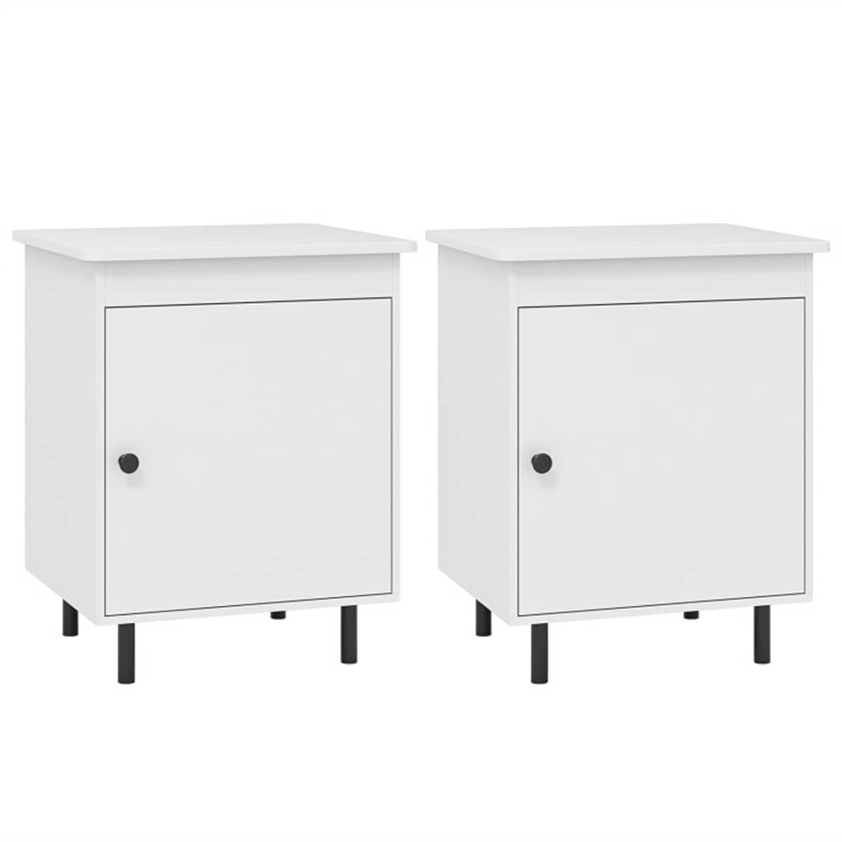 White Engineered Wood End Table with Cabinet Storage and Metal Legs Set of 2
