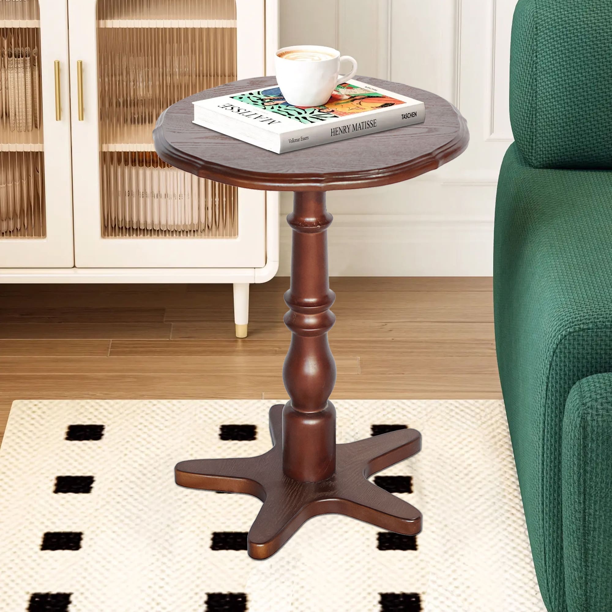 15.75 inch round small end table, wooden pedestal side coffee tables, vintage accent nightstand for living room, bedroom, entryw