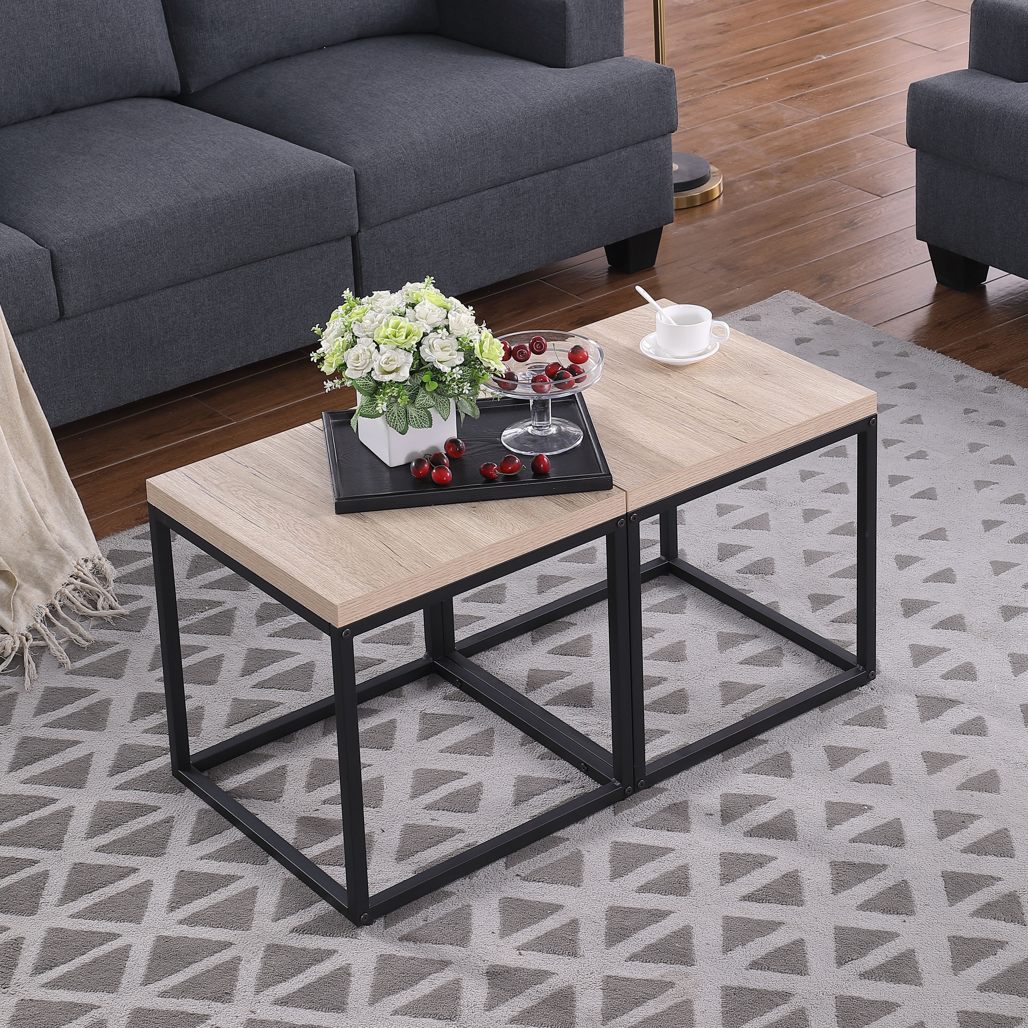 end table side table,set of 2 end table,rectangular wood and metal nightstand,coffeetable,storage small end table, for living ro