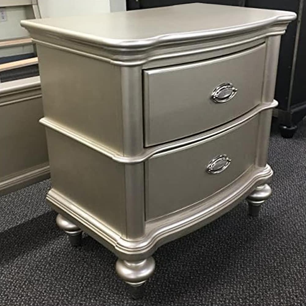 wood chestnut curve 2-drawer nightstand, 2 open slots, brown
