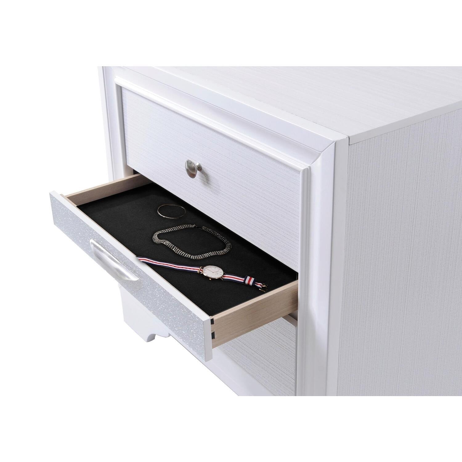 glamorous white silver finish 1pc nightstand of 2x drawers acrylic bar pulls stylish bedroom furniture