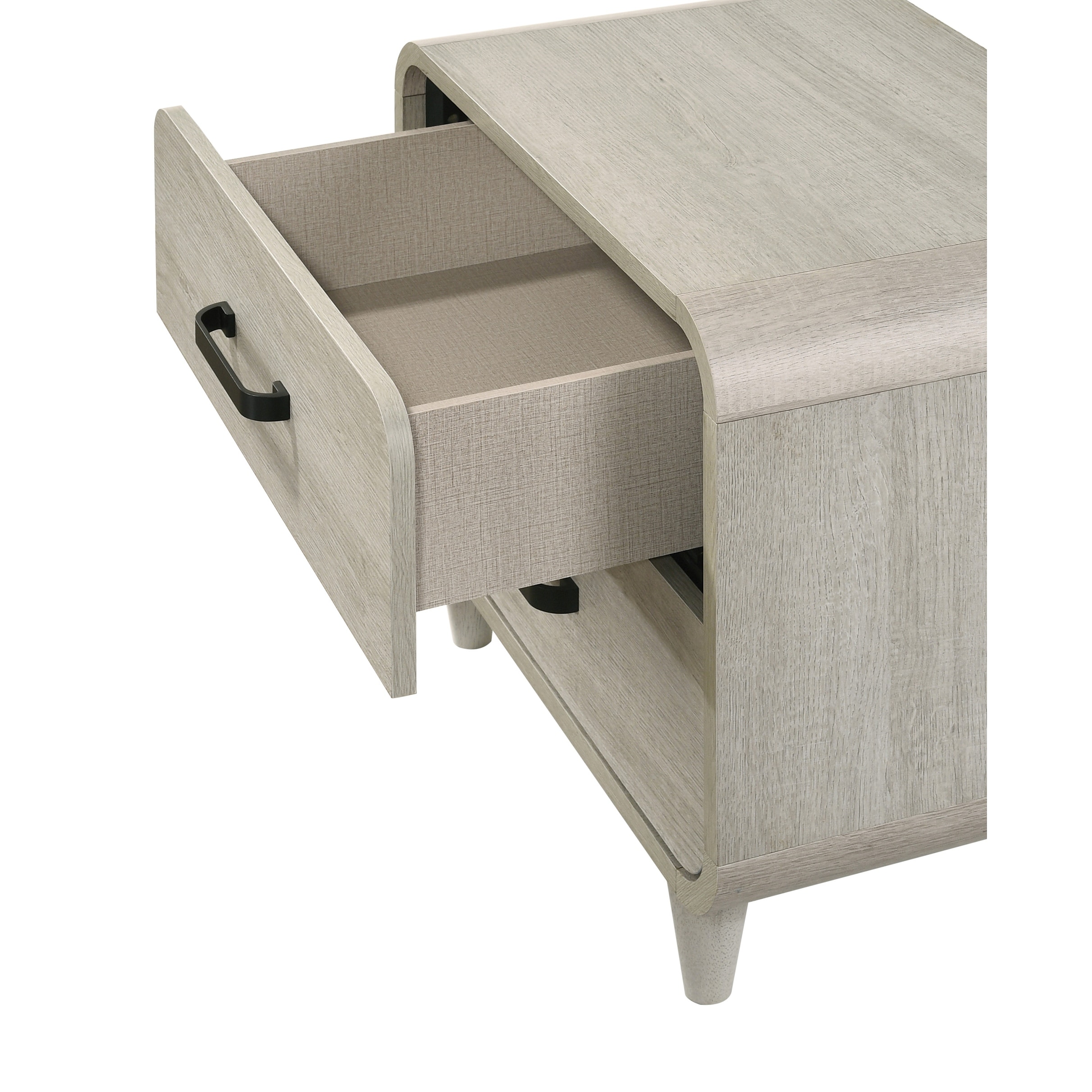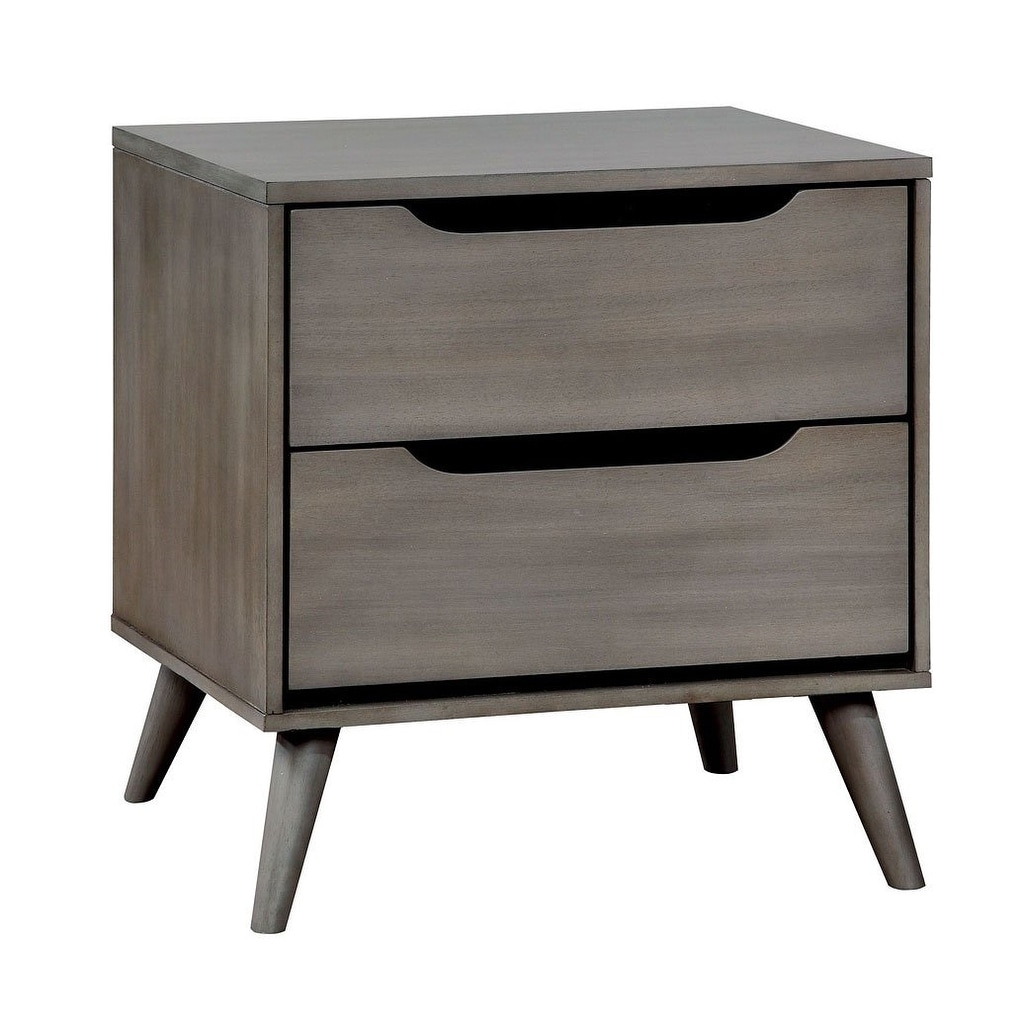 mid-century modern gray color 1pc nightstand bedroom furniture solid wood round tapered legs 2-drawers bedside table