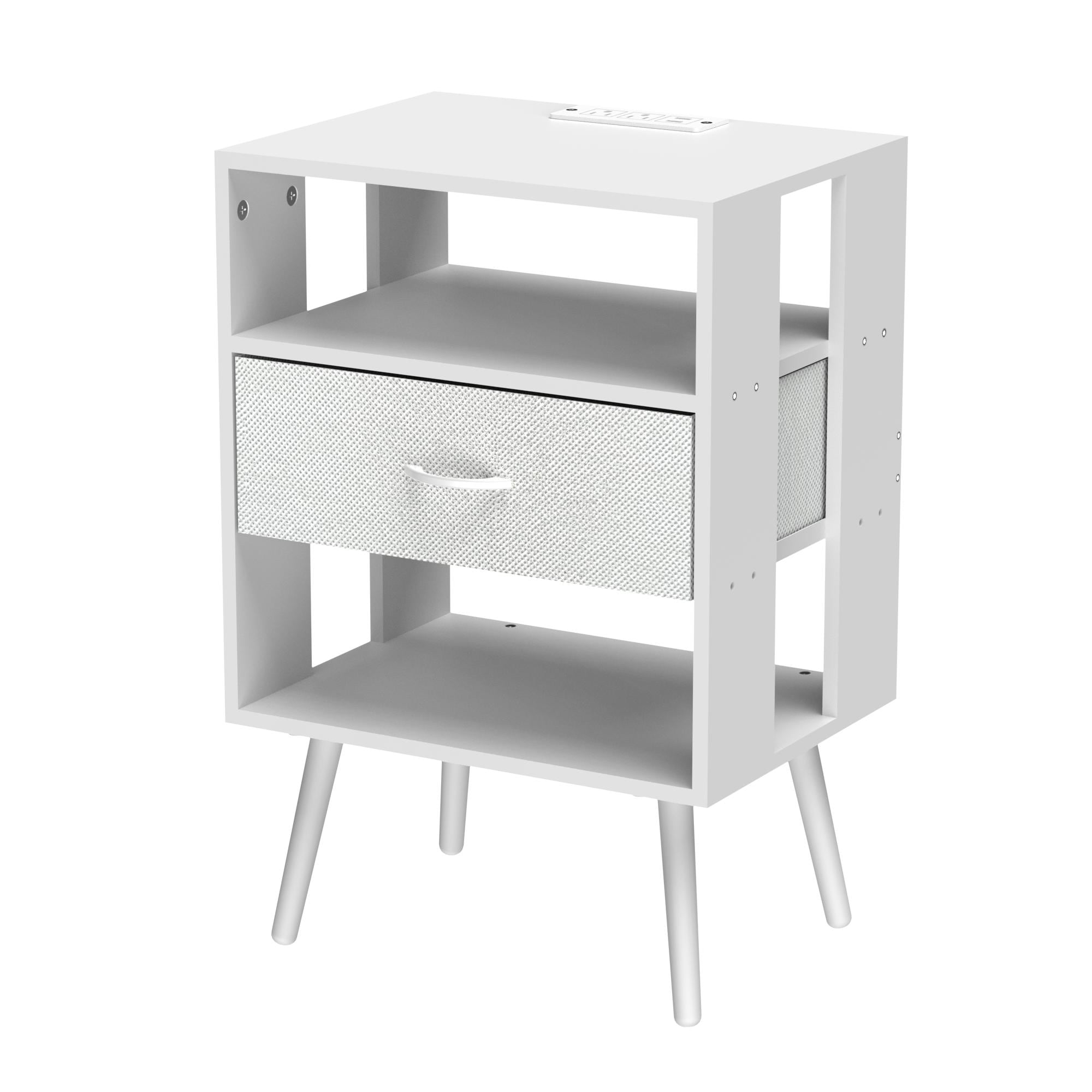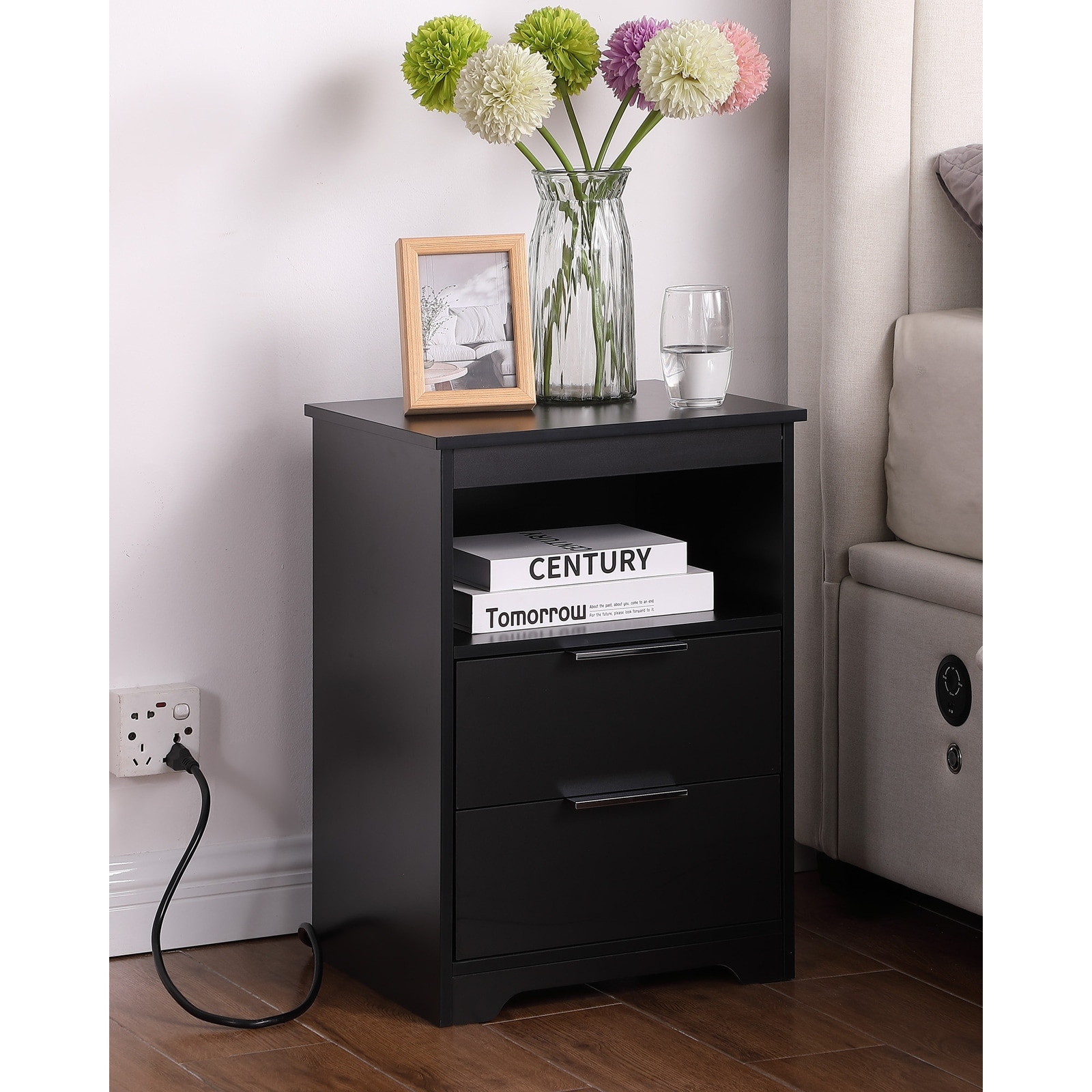 nightstand with charging station,end table with 2 drawers,wooden end table with drawer and opening shelf,side table for bedroom,