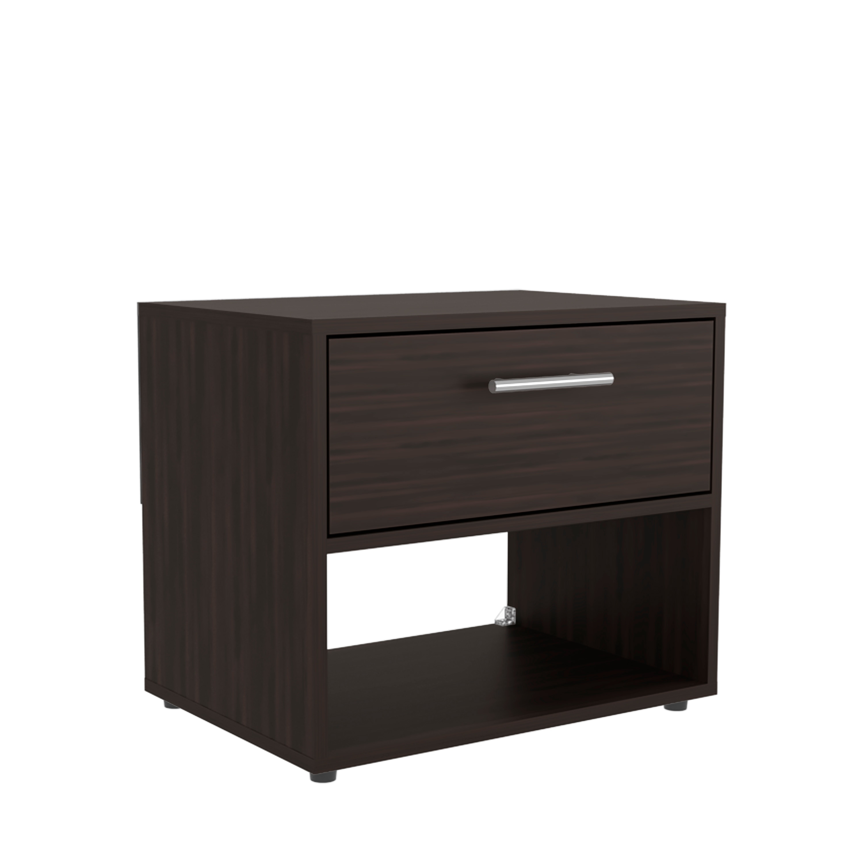 alpine 18" high one drawer nightstand with one shelf, side table, end table for bedroom, living room dark walnut