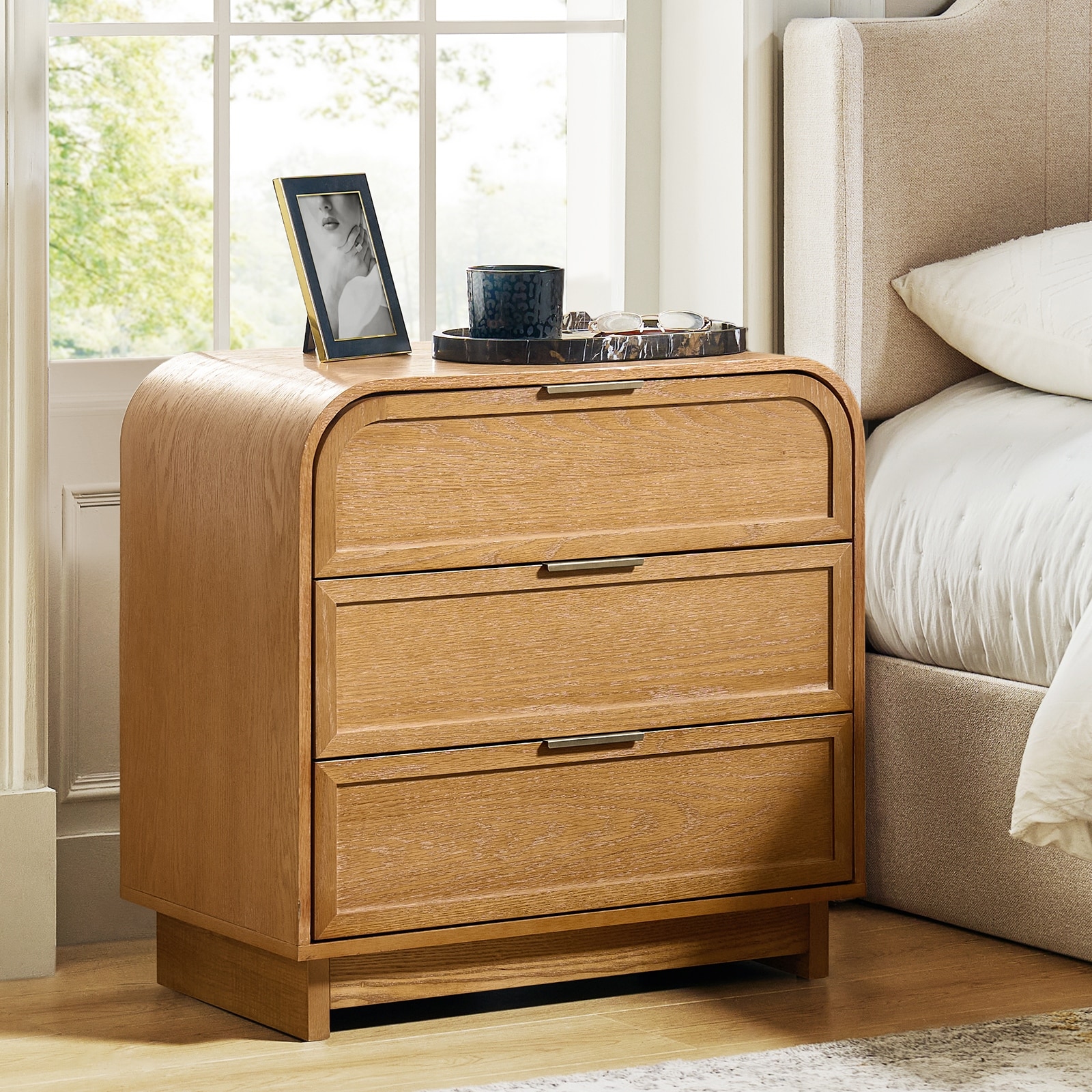 Yanick Modern 3-Drawer Arched Nightstand With Solid Wood Legs and Charging Station by HULALA HOME