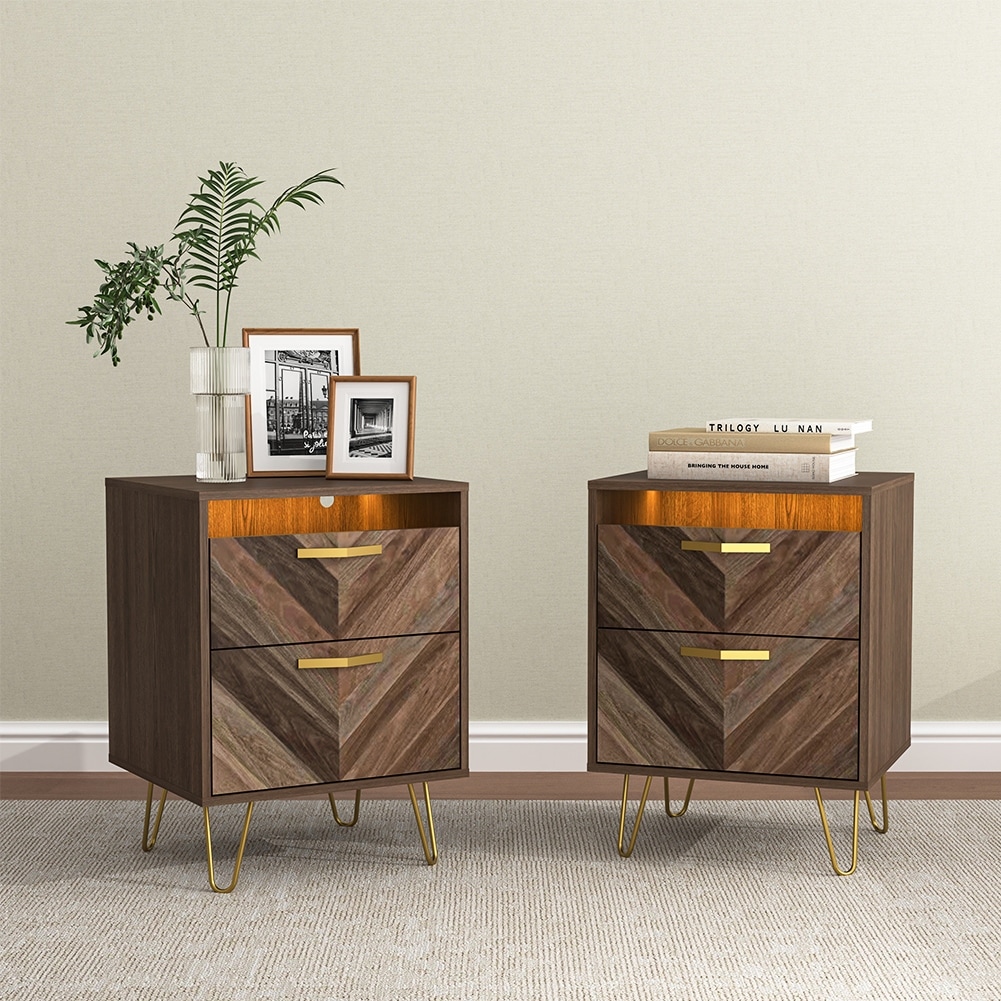 Velvet Bedside Table With 2 Drawers Except Legs And Handles