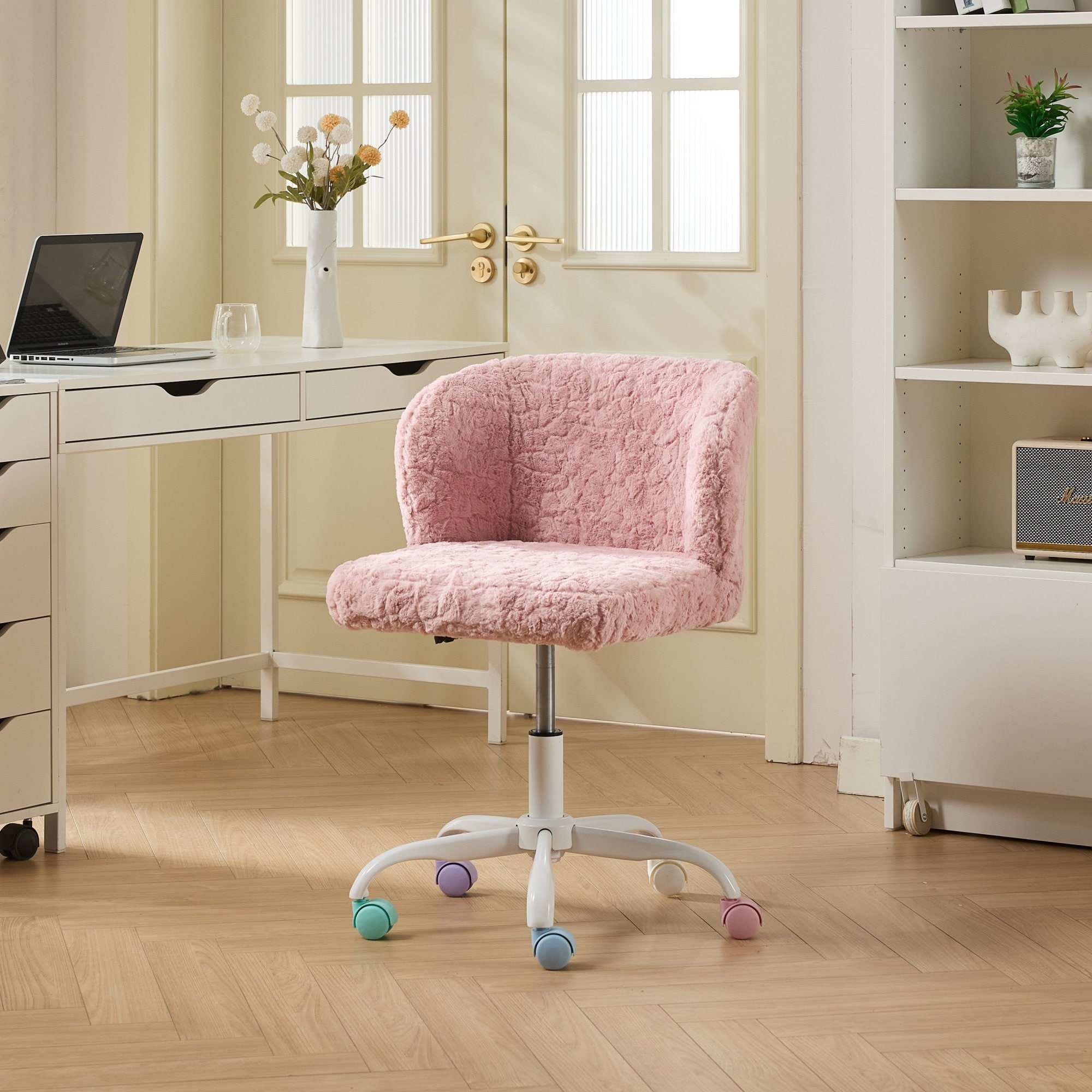GDF Studio - Modern Faux Fur Upholstered Swivel Home Office Chair with Metal Base with Ergonomic Backrest and Wide Deep Seating