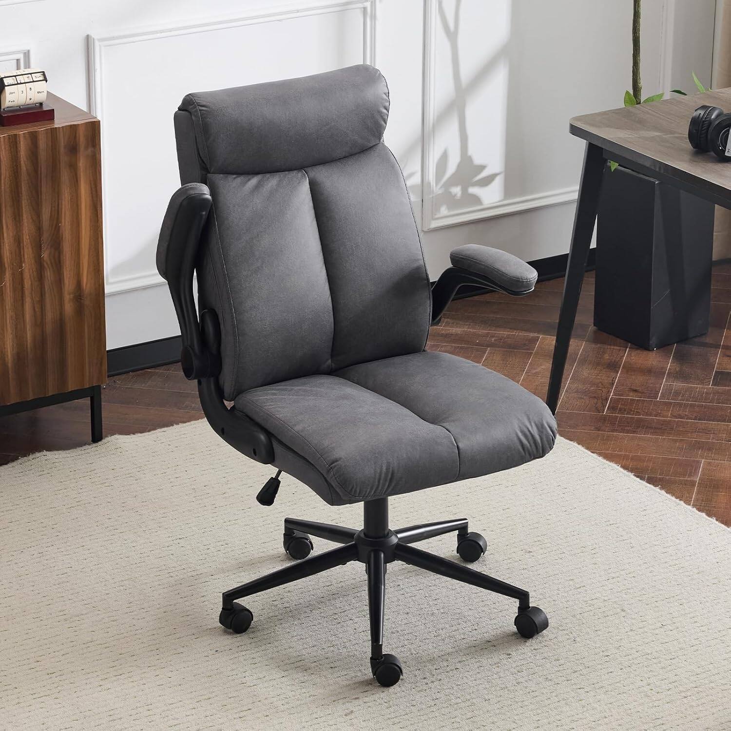 Ergonomic Mid-Back Office Chair with Adjustable Seat Height and Flip-Up Armrests, Black