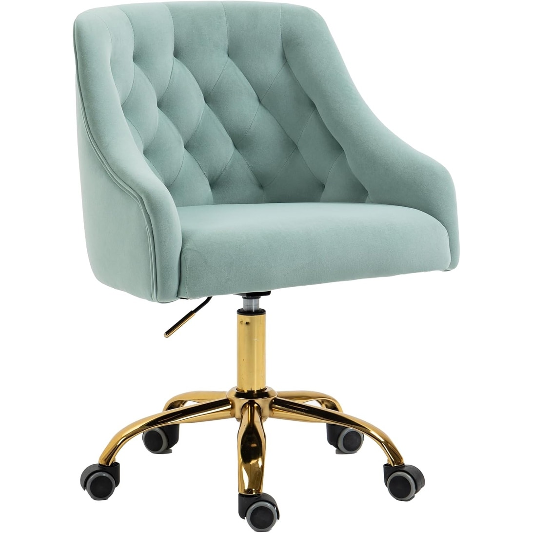 Modern Velvet Upholstered Adjustable Swivel Desk Chair for Home Office, Living Room, Bedroom (Sage Green)