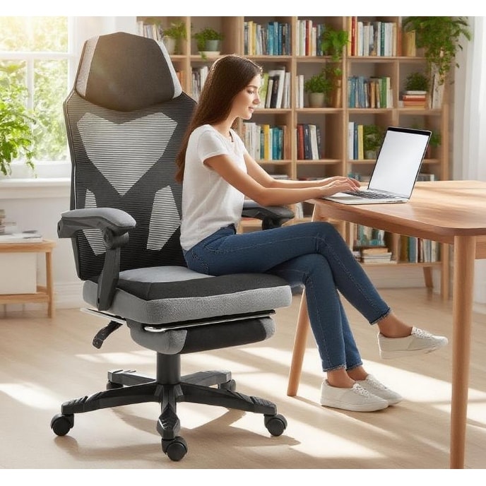 Home Ergonomic Office Chair, Adjustable Height, 360 Degree Swivel Computer Desk Chair, Reclining Gaming Chair with Footrest