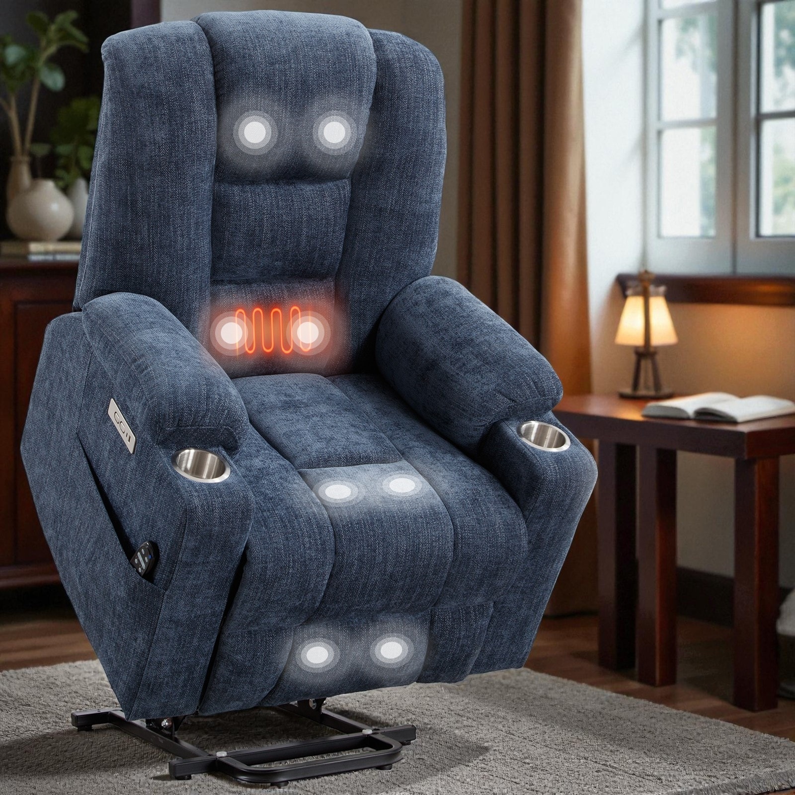 Power Lift Recliner with Massage and Heat for Elderly, Wide Chenille Chair with USB Type C and Cup Holders
