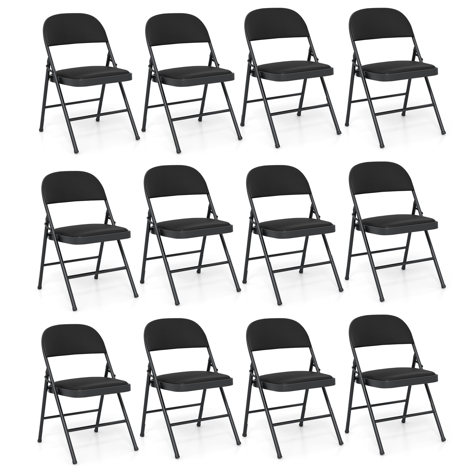 Gymax 12PCS Folding Chairs w/ Metal Frame PVC Leather Stackable Chairs