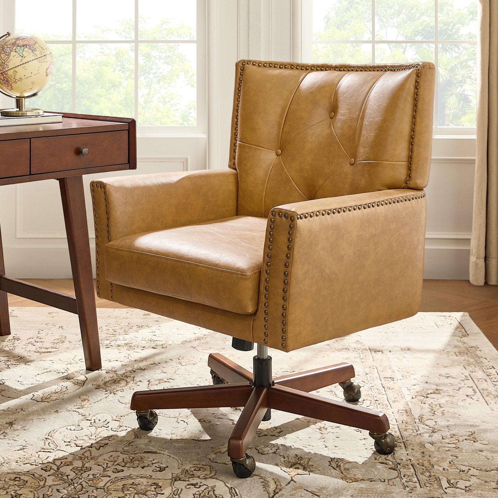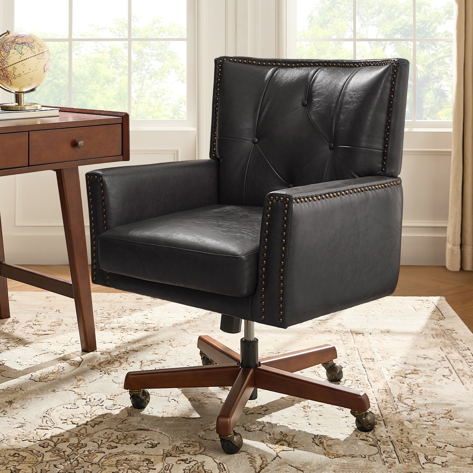 Meroy Transitional Leather Solid Wood Office Chair By HULALA HOME