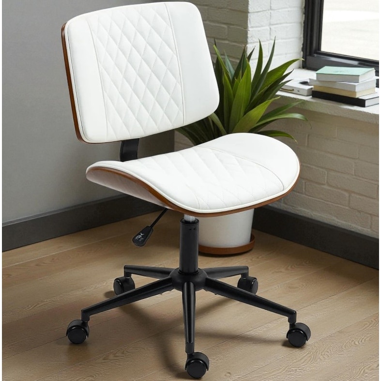 Home Office Chair No Arms with Wheels, Adjustable PU Leather Desk Chair with Bentwood Frame & 360掳 Swivel