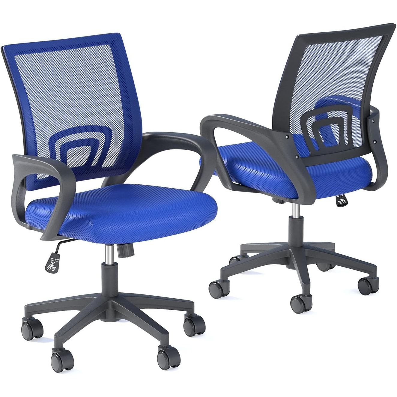 Ergonomic Mid-Back Mesh Office Chair with Lumbar Support, Adjustable Swivel Rolling Design, Navy Blue, 2 Pack